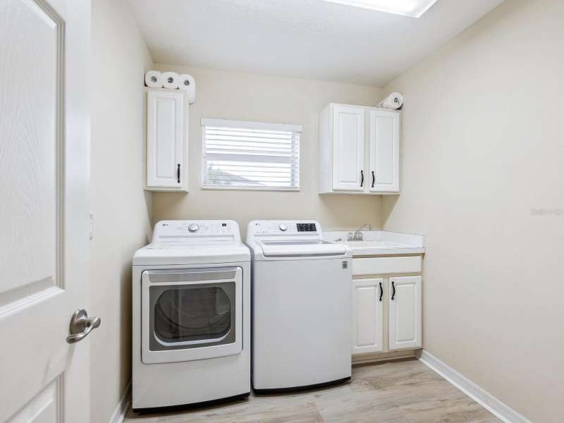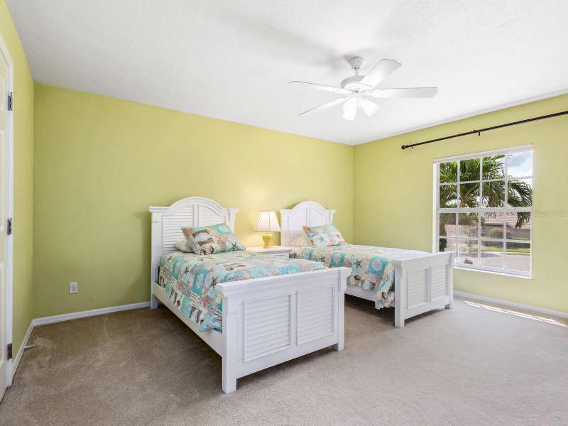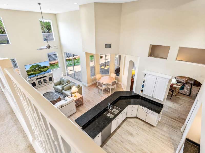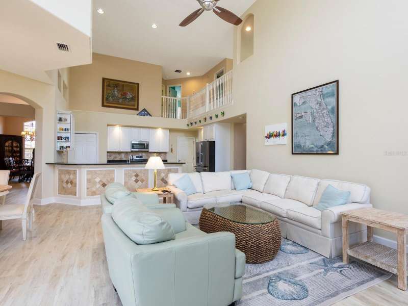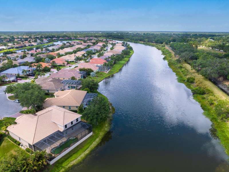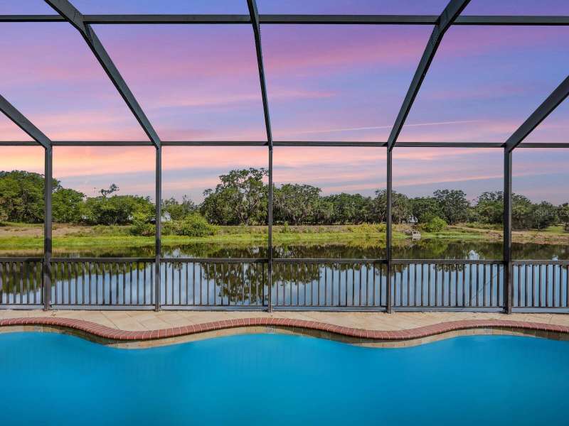 Lovely spacious home on quiet premium oversized cul-de-sac parcel with 180-DEGREE WATER VIEW AND NOT IN A FLOOD ZONE! Enjoy sunsets from your lanai every night and the peace of mind knowing there is a BRAND NEW 2025 TILE ROOF overhead... Freshly painted interior; Immaculately maintained; New Luxury Vinyl Wood Flooring in all 1st floor public areas; FIRST FLOOR PRIMARY ENSUITE BEDROOM AND SITTING AREA with a lovingly upgraded DUAL VANITY bathroom; Natural gas; Upgraded 18 +/- month old Kitchen Appliances; Two 2019 Air Conditioners; 18 foot Ceilings in Family room and Kitchen; Split, Open Floorplan; 12 foot Ceilings in Primary Ensuite; Access to lanai, saltwater pool and water view from multiple first floor locations; Flexible floor plan ... On the First Floor: Primary Ensuite Bedroom and either 5th bedroom with full bath OR Office/Den plus Pool Bath; Upstairs 3 Bedrooms and 2 Baths (1 Ensuite); In Excellent School District and near multiple private schools; Freshly Resealed Paver Driveway, Front Walkway and Pool Deck; 3 Car Garage Salt Water, Heated Swimming Pool with 180 degree water views and generous lanai area for luxuriating outdoors; Hurricane Sutters for all openings; Irrigation System with Reclaimed Water; Wonderful MOVE-IN-READY in super convenient location ...LOW HOA FEES ... NO CDD ... Lovely Community Amenities which include: Clubhouse, Fitness Center, Pickleball Courts and Community Pool. Easy to show ... GATE CODE REQUIRED FOR SHOWINGS; Seller downsizing and moving to another Florida city. A GREAT BUY for some lucky person.