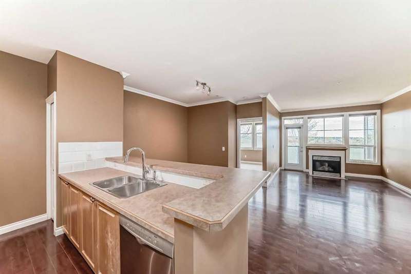 Welcome to this MOVE-IN-READY 2-bedroom, 2-bathroom with a DEN property in the desirable Stonecroft of Arbour Lake. Stonecroft Arbour Lake is a beautifully maintained complex with exceptional amenities, including a common area social room with a kitchen, a guest suite available for rent, fantastic wood shop, beautiful garden and fountain and plenty of visitor parking. The open concept floor plan includes 9ft ceiling, a spacious living room, cozy corner gas fireplace and dedicated dining area. Also, a large covered balcony, with gas line making it perfect for your bbq, ideal for entertaining or relaxing. The master bedroom features a walk-in closet and 3 piece en-suite. The second bedroom is equally well-appointed and another 4-piece bathroom. There is a den/home office with French doors provides a quiet and functional workspace. Additional conveniences include in-suite laundry and an assigned storage locker. Walking distance to the very popular Crowfoot Crossing offering all the goods and services you'll need - Walking distance to the C-Train - close to parks and schools - quick & convenient access to all major routes - Access to your own private lake park, paddle boats, fishing, tennis courts, skating, community events and much more! Don't miss the opportunity to make this condo your own!
