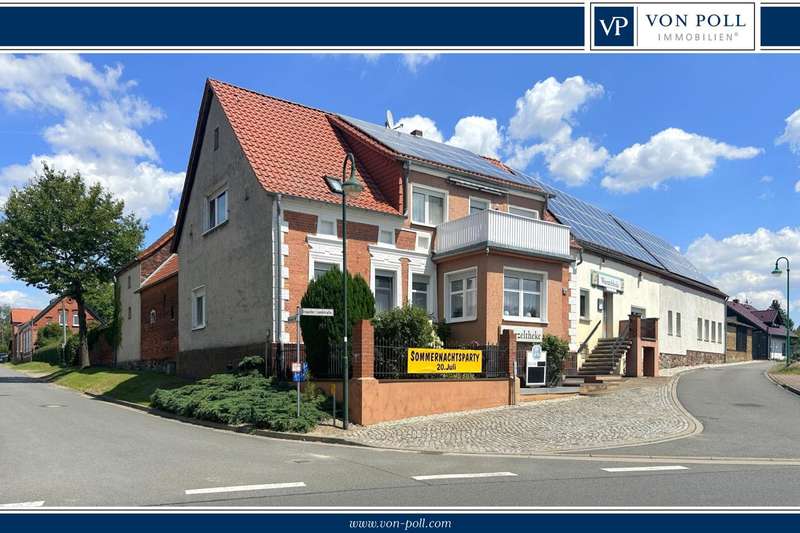 Residential or commercial? Why not both? This property impresses with a living and usable area of approx. 830 m² spread over a spacious detached house, an extension, a large commercial unit and other outbuildings. The detached house is characterized by bright rooms and a good room layout. The entrance to the house is in the vestibule. The adjoining hallway connects all the rooms on the first floor. These include a spacious living room, a cozy bedroom, a bright study, a fully functional fitted kitchen and a bathroom with a walk-in shower. There are storage rooms, a further WC and the laundry room in the annex. The top floor is divided into a hallway, a bright living room, a study with adjoining balcony, two bedrooms and a bathroom with bathtub. The balcony offers a fantastic view over the village. The commercial area extends over an area of approx. 180 m² and was previously used as a restaurant. The separate entrance leads to the bar area and the adjoining guest rooms including WCs. The commercial area also offers space for an event room with its own bar, buffet room and WCs. Exits on the courtyard side also allow guests to use the outdoor area if required. The property has a size of approx. 1,930 m². Two separate driveways with swing gates lead onto the property. The inner courtyard and paved paths connect the buildings. In addition to the detached house, an extension and the commercial space, the property offers a large workshop, a further outbuilding, a covered terrace and 3 garages. The well-kept garden boasts beautiful plants and plenty of privacy. An absolute highlight is the pool and terrace. Take a look at the many possible uses of this property and contact us for more information.
