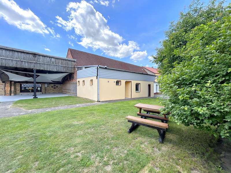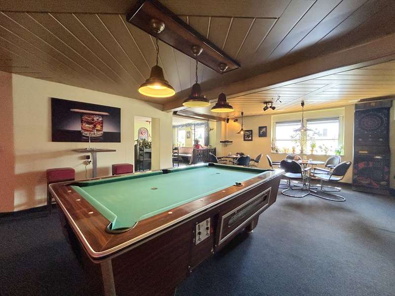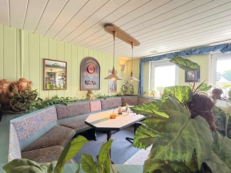 Residential or commercial? Why not both? This property impresses with a living and usable area of approx. 830 m² spread over a spacious detached house, an extension, a large commercial unit and other outbuildings. The detached house is characterized by bright rooms and a good room layout. The entrance to the house is in the vestibule. The adjoining hallway connects all the rooms on the first floor. These include a spacious living room, a cozy bedroom, a bright study, a fully functional fitted kitchen and a bathroom with a walk-in shower. There are storage rooms, a further WC and the laundry room in the annex. The top floor is divided into a hallway, a bright living room, a study with adjoining balcony, two bedrooms and a bathroom with bathtub. The balcony offers a fantastic view over the village. The commercial area extends over an area of approx. 180 m² and was previously used as a restaurant. The separate entrance leads to the bar area and the adjoining guest rooms including WCs. The commercial area also offers space for an event room with its own bar, buffet room and WCs. Exits on the courtyard side also allow guests to use the outdoor area if required. The property has a size of approx. 1,930 m². Two separate driveways with swing gates lead onto the property. The inner courtyard and paved paths connect the buildings. In addition to the detached house, an extension and the commercial space, the property offers a large workshop, a further outbuilding, a covered terrace and 3 garages. The well-kept garden boasts beautiful plants and plenty of privacy. An absolute highlight is the pool and terrace. Take a look at the many possible uses of this property and contact us for more information.