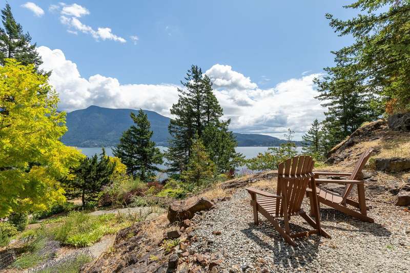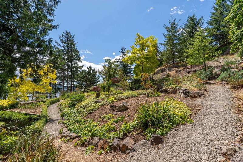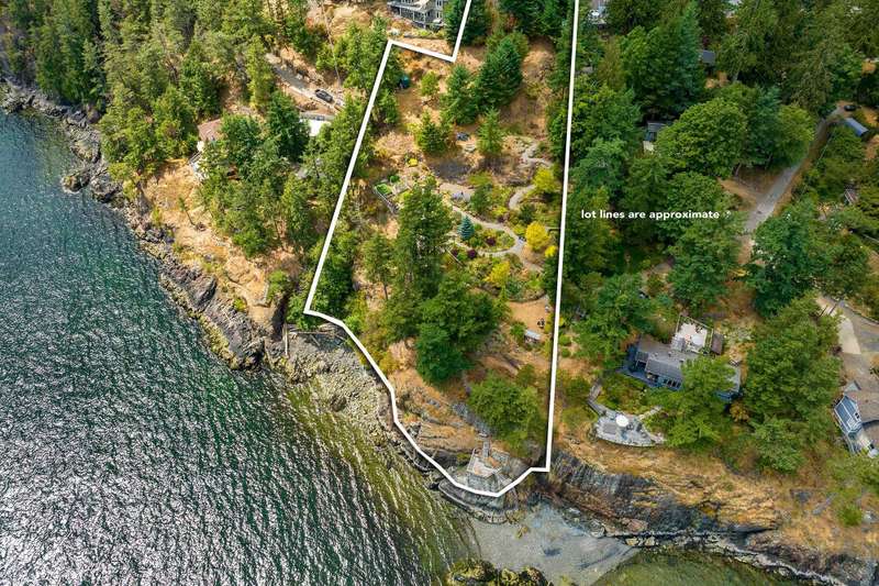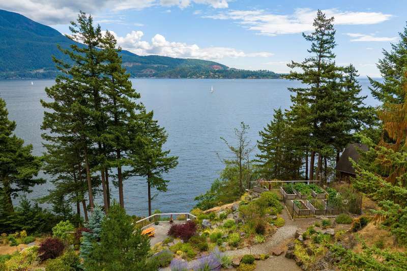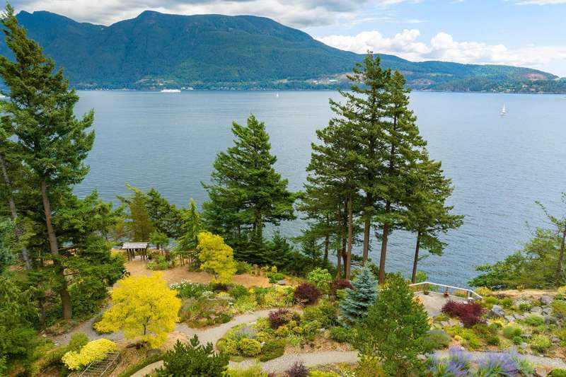 Imagine yourself here on 1.77 WATERFRONT ACRES in the Howe Sound UNESCO Biosphere, where sweeping vistas from Black Tusk to UBC & the Gulf Islands and beyond are enjoyed from anywhere you look. A path leads to a cantilevered viewing platform that is the perfect spot to view sea birds, humpback whales, orcas, seals and sea lions. This prized property, featured on several garden tours, showcase years of passion and reverence for the land. A significant portion of the property consists of walking paths that wind through a multitude of shrubs, unique trees, and perennials, all deer resistant. Easily accessed by a gently sloped driveway there is a logical, flat build site for a home, and lots of space for a second dwelling. NO FOREIGN BUYER BAN (buyer to confirm w/ professional advice).