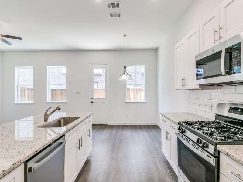 Open House March 2nd 1:00-4:00pm. Visit 2402 Bent Oak Trl, Sachse to view 10 new move-in ready homes.New townhome is now ready! Walk into an open & flowing spacious floorplan that easily moves between the large living, dining, & kitchen areas. There is also access to a private garden backyard. The kitchen with breakfast bar, SS appliances, gas stove, walk-in pantry, granite counters, & ample storage, has direct views of living & dining spaces making communication or entertaining a breeze. Notice all the natural light! While the first floor with LVP throughout has your main living space & a half-bath for guests, upstairs you will find all three carpeted bedrooms, two full-size baths with tile, & an office, study or game area. A great feature of this home is the low maintenance with the HOA caring for front yard & common areas. Great parking with your own direct access attached private two-car garage & good-sized driveway for visitors. Located within walking distance to local elementary, & near Firewheel Town Center as well as easy access to 190!