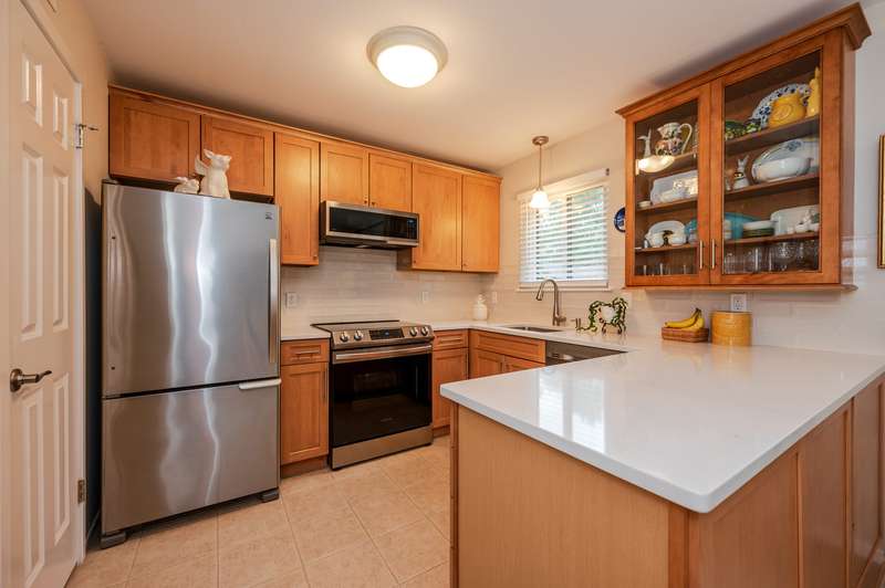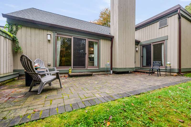 Step into this fully updated 2-bedroom, 2-bath condo that perfectly blends style, comfort, and convenience. The open-concept living and dining area features modern finishes, abundant natural light, and direct access to a large private patioideal for morning coffee, evening relaxation, or entertaining friends while enjoying the peaceful wooded backdrop.The renovated eat in kitchen offers sleek cabinetry, quartz countertops, tile backsplash and stainless steel appliances (range, dishwasher and microwave new as of 2022). Both bedrooms are generously sized, with the primary suite featuring a beautifully updated en-suite bath, ample closet space and sliders to the patio. Baseboard heat added to both bedrooms. As well, all popcorn ceilings have been removed for a seamless look. Other highlights include in-unit laundry, updated flooring throughout, wood burning fireplace and thoughtful details that make this home truly move-in ready. Located in well-maintained Heritage Hills, close to shopping, dining, and commuter routes, this condo is the perfect combination of tranquility and accessibility. Enjoy the country club lifestyle with 5 pools, pickleball/tennis/shuffleboard courts, gym, activities center as well as numerous activities. There is a carport with ample storage closet and guest parking. HOA breakdown: Condo $421, Society $174, monthly sewer and water (based on usage) less than $100 per month