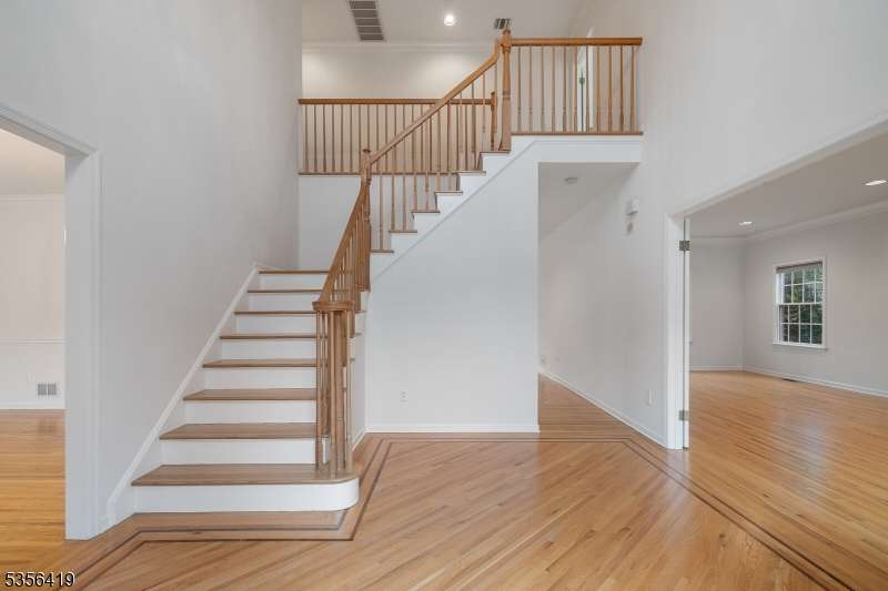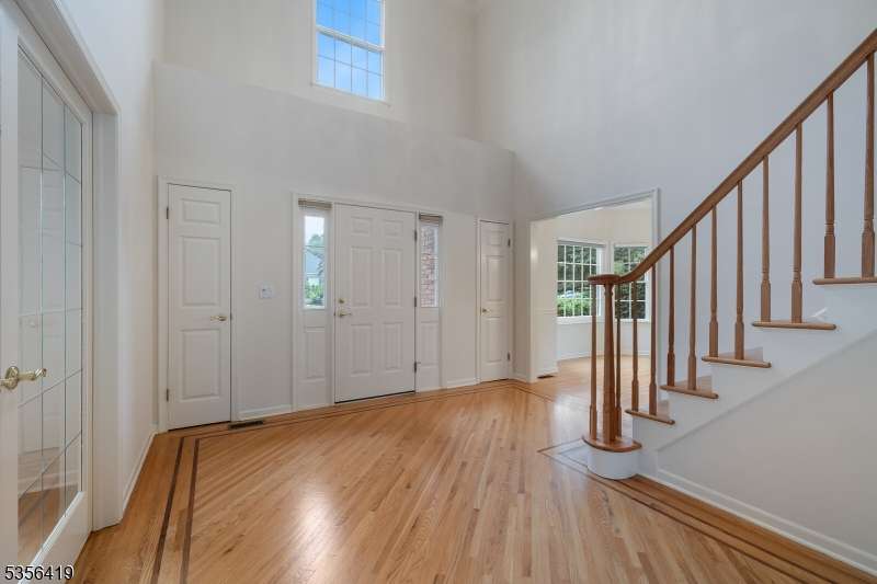 Welcome to this gorgeous and spacious home featuring soaring ceilings, an open floor plan, and an abundance of natural light. Beautiful hardwood floors flow throughout the main level, highlighting the generously sized rooms designed for both comfortable living and effortless entertaining. A unique back staircase leads to a versatile great room perfect as a playroom, home office, guest suite, or additional bedroom. Upstairs, you'll find four spacious bedrooms and two well-appointed bathrooms. Step outside onto a large deck that opens to a beautifully landscaped backyard ideal for outdoor gatherings. A 3-car garage provides ample storage and convenience. Located in the Clover Hill community, you'll enjoy a park complete with walking trails around a lake, a playground, tennis and basketball court, a covered picnic shelter, and a sand beach with a volleyball court. All this just minutes from train/bus service, Routes 78 and 287, shopping, restaurants, and more!