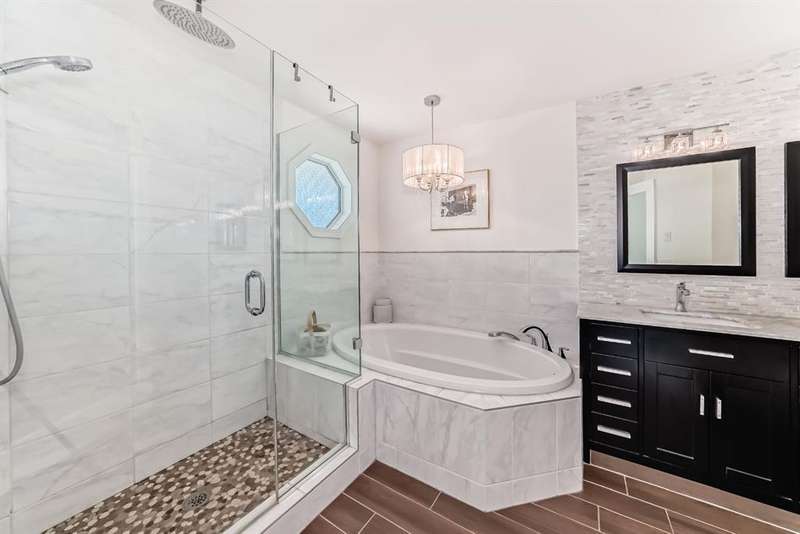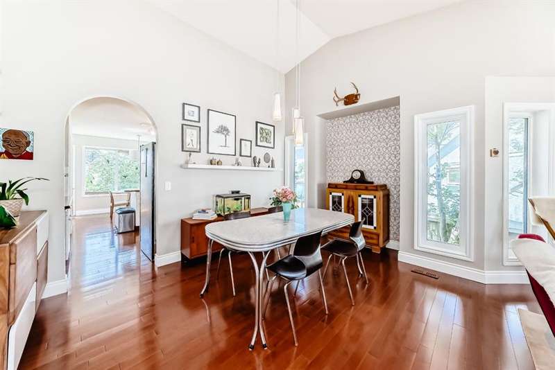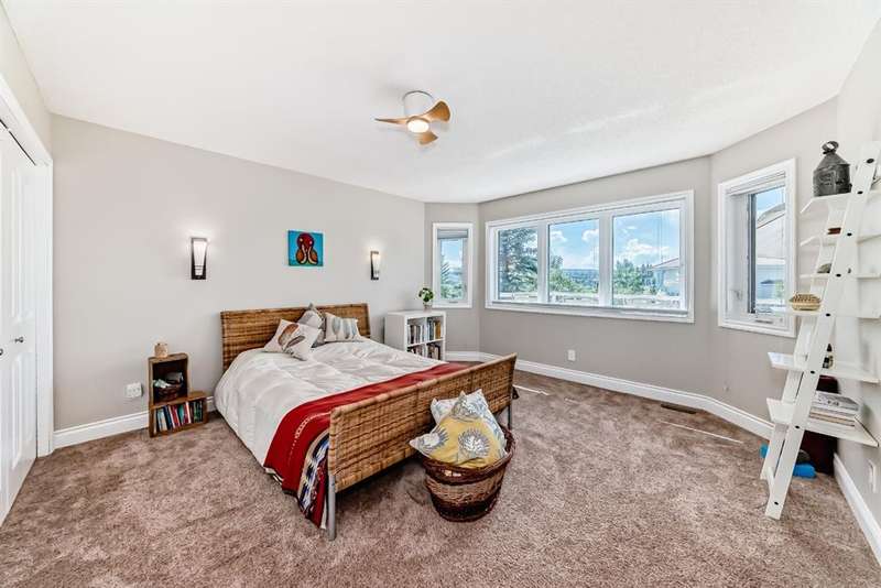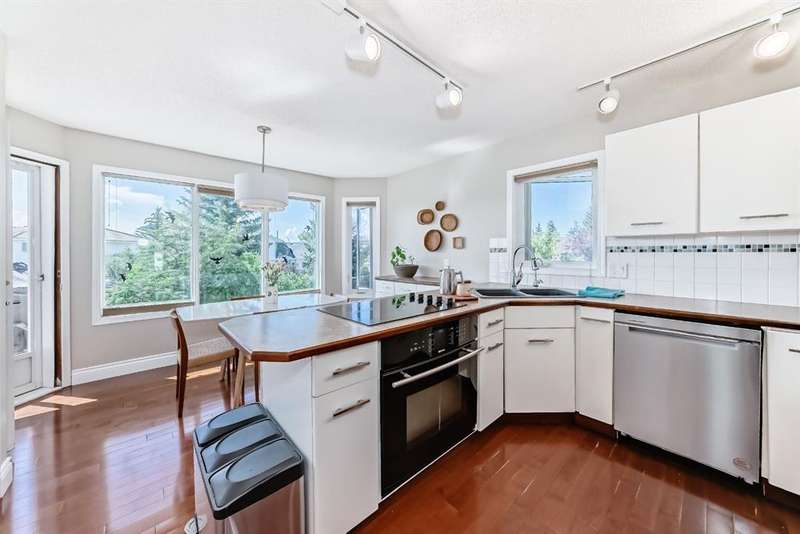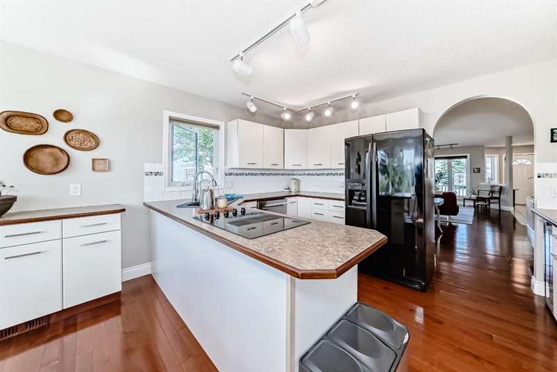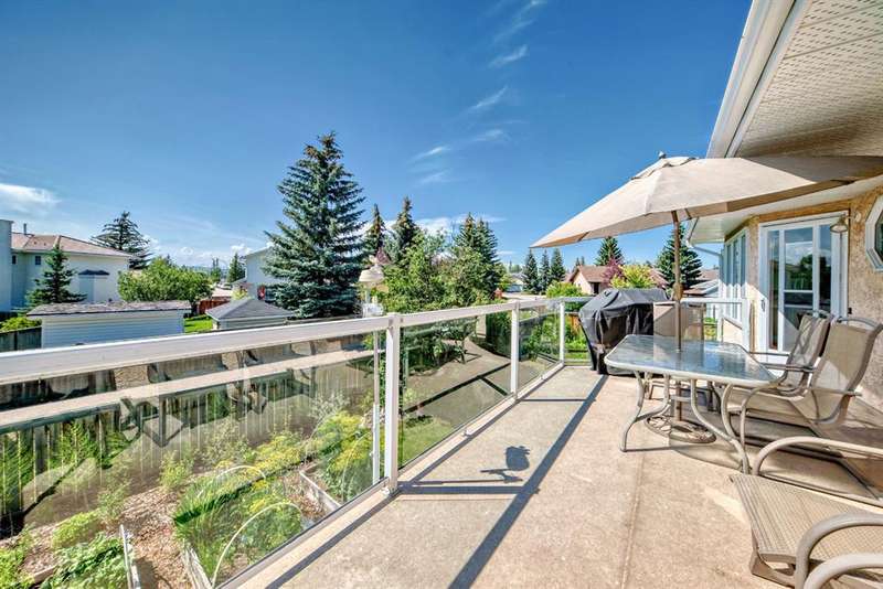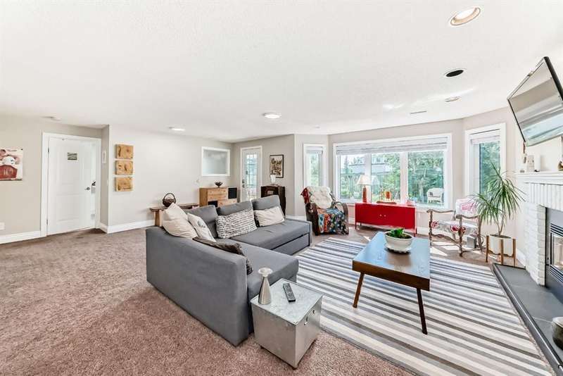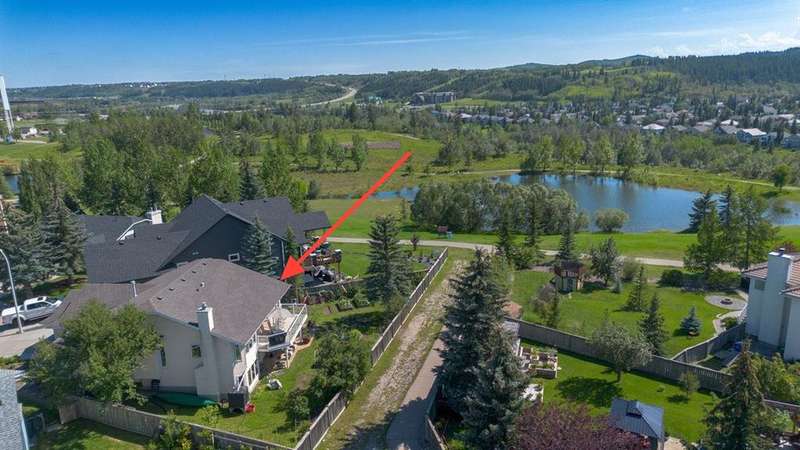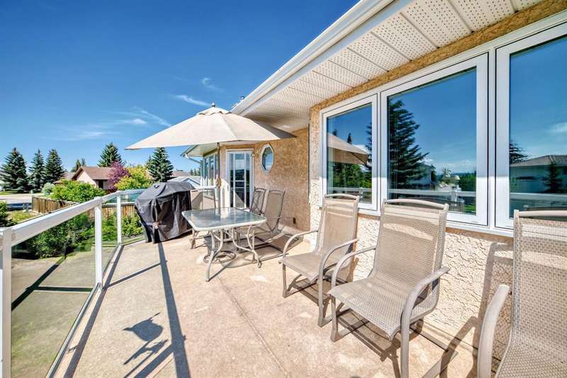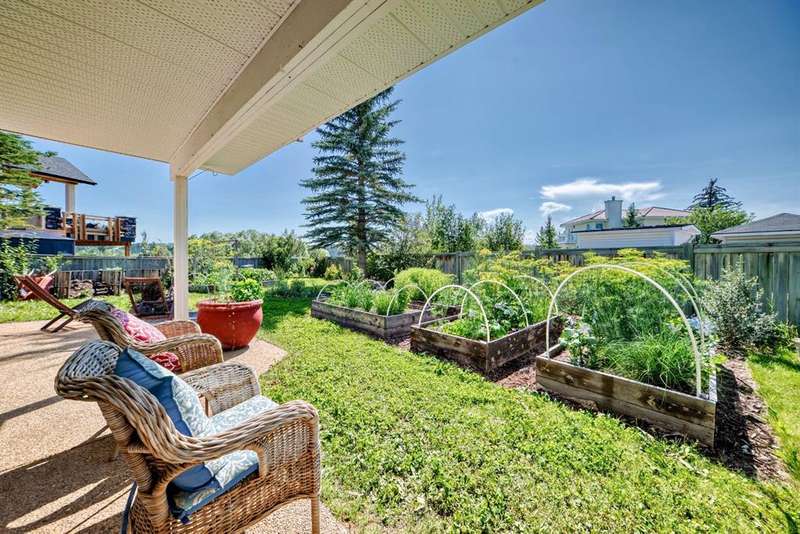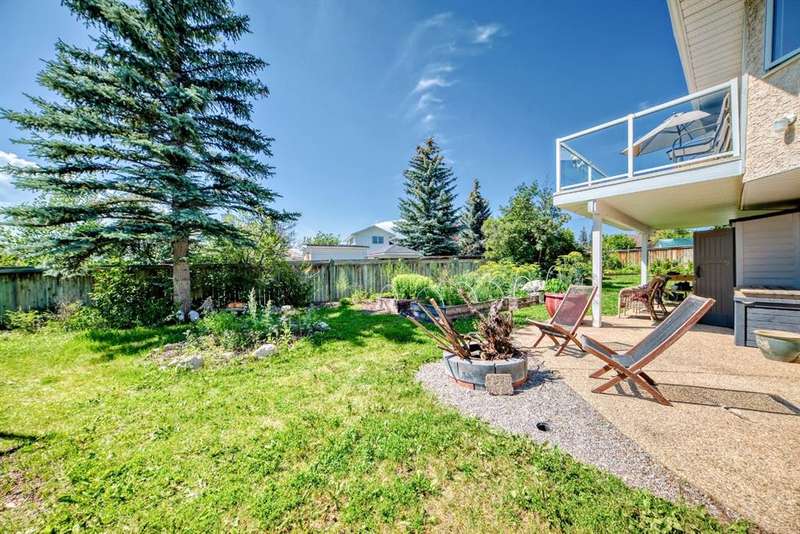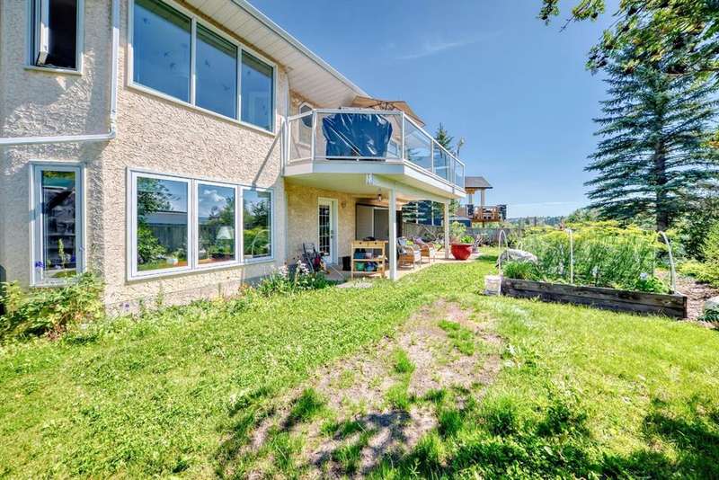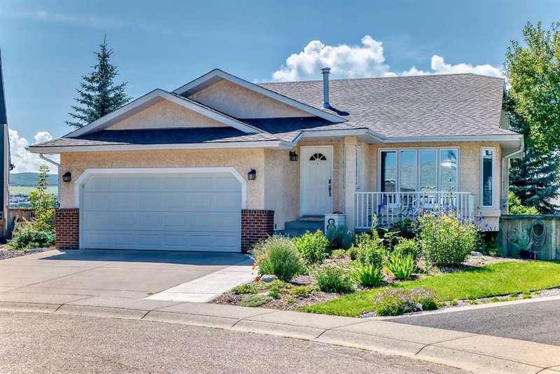 INCREDIBLE LOCATION. This WALKOUT BUNGALOW sits on an OVERSIZED,PIE-SHAPED LOT in the desirable and well established community of WEST VALLEY. Situated in a QUIET CUL DE SAC and backing onto the trails leading directly to the expansive MITFORD PARK, this idyllic setting boasts the convenience of suburban living with the solitude of nature. Enjoy the VIEW OF MITFORD PONDS and abundant birdlife from your upper deck or indoor breakfast nook, or the morning sun with your morning coffee on the front deck. As you enter the house you are greeted with an impressive open concept living/dining area with vaulted ceilings and an amazing east facing picture window with views of Cochrane’s famous Big Hill. From the dining area you enter the well laid out kitchen that provides easy access to the upper patio, perfect for bbqing and outdoor dining. The main floor contains a spacious primary bedroom with west views and a luxurious updated 5pc ensuite with soaker tub and 2 additional bedrooms perfect for kids rooms, office/library or guest room spaces plus a 3pc bath. Easy access to the attached INSULATED, HEATED, OVERSIZED GARAGE/workshop makes everyday living easy. Downstairs find a sunlit, cozy family area centred around a gas fireplace where you can enjoy movie nights or reading your favourite books with adjacent flex space perfect for a home gym or craft area. Two more bedrooms on the lower level provide options for a growing family, guests, or a home office/studio space. A 3 pc bath/laundry room completes this level which also boasts a large utility room with ample storage. Enter the SW facing backyard from your walkout basement into a private, established garden space filled with raised garden boxes, pollinator gardens, fruit bearing shrubs and plants as well as developed rain capture and composting systems. Take this permaculture project to the next level or make it your own kind of backyard oasis! A covered porch and firepit provide any outdoor lover with even more vantage points to enjoy the peace and quiet of this rare property. Access trails straight out the back gate and be at the river in 10 min, soccer fields and skate park in 5 min, or the bluffs overlooking the Bow River with mountain views in 2 min. Right out your back gate, take your fishing rod to the stocked ponds in the summer or ice skates to the lit ice rink and community firepit in the winter! Whether you’re looking to move out of the city, downsize from country living or rightsize for your family, this home’s practical 2500+ sq ft layout, convenient and tranquil location close to nature, schools, shopping, restaurants and all essential amenities will not disappoint. This lovingly maintained home also features central AC, newer vinyl windows, a 2018 roof, exposed aggregate backyard patio, low maintenance front perennial/pollinator garden, loads of storage, double hot water tanks and updated LED lighting. Ideal locations like this are exceedingly hard to find, so don’t miss out on this one! It is a true gem.