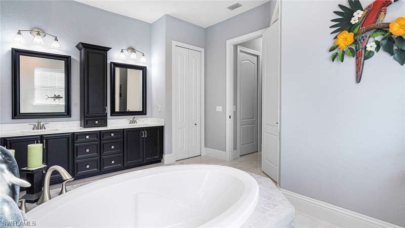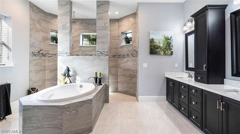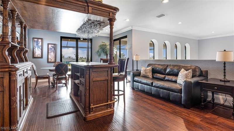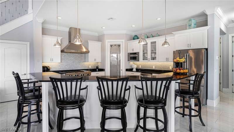 Welcome to your dream waterfront oasis! This stunning 5-bedroom, 4-bathroom home is a luxurious retreat that seamlessly blends elegance with comfort. Spanning an expansive 4,676 square feet, this residence offers an unparalleled lifestyle for those who appreciate the finer things in life. As you step through the grand entrance, you'll be greeted by the timeless beauty of Dolomite marble flooring that graces the lower level, creating an atmosphere of sophistication and opulence. The upper level boasts exquisite hardwood flooring, adding warmth and character to the living spaces. The heart of this home is the gourmet kitchen, adorned with Diamond Black Quartz countertops and equipped with top-of-the-line appliances, including a 6-burner gas stove top. The kitchen is a chef's delight, providing a perfect blend of style and functionality. Entertaining is a breeze with the outdoor haven that awaits you. Step outside to discover a private paradise featuring a sparkling pool and spa, where you can relax and unwind while enjoying breathtaking waterfront views. The Tiki bar and outdoor kitchen provide the ideal setting for hosting memorable gatherings with friends and family, creating a resort-like ambiance in the comfort of your own home. Indulge in the luxury of a master suite that exudes serenity, offering panoramic views of the water and a spa-like bathroom retreat. Four additional well-appointed bedrooms ensure that there is plenty of space for family and guests. With its prime waterfront location, this residence offers more than just a home; it offers a lifestyle. Wake up to the sound of gentle waves and end your day with a spectacular sunset over the water. This is waterfront living at its finest, where every detail has been thoughtfully curated to create an unparalleled living experience. Don't miss the opportunity to make this extraordinary waterfront home yours. Live the life you deserve in this exquisite retreat that seamlessly combines style, comfort, and the allure of waterfront living. Welcome home to luxury!
