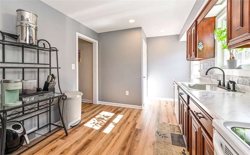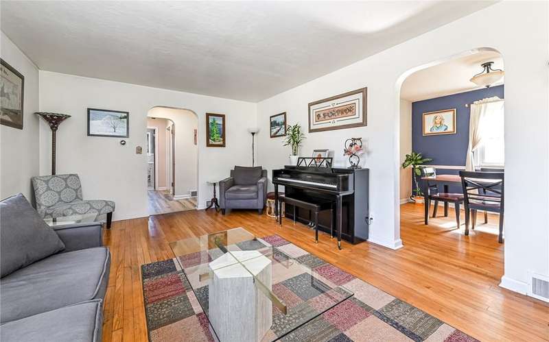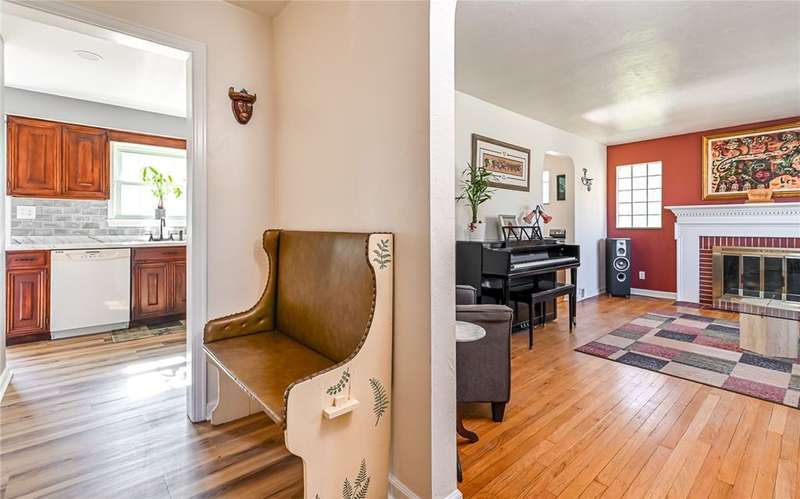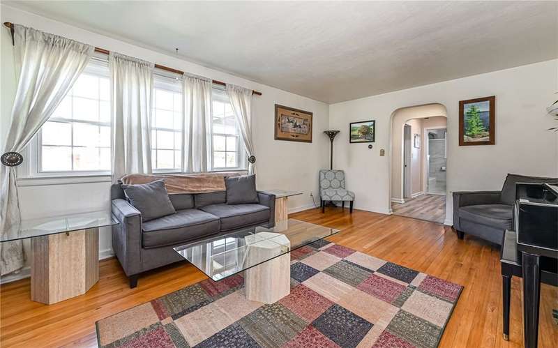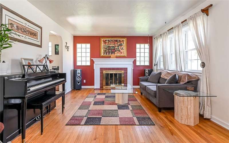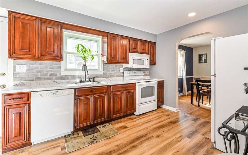 Move in Ready well built and maintained solid brick home. Home features brand new roof, gutters and chimney cap. Cozy front porch. Warm and inviting home with gleaming original hardwood flooring. Light and bright living room with cozy gas log fireplace. Dining room is sized perfectly for family and friend gatherings. Fully equipped updated kitchen with access door to backyard and patio. Two great sized bedrooms with hardwood flooring, overhead lighting and ample closet space. Freshly updated bathroom with ceramic walls and flooring completes first floor. Finished game room adds additional seating and play space. Huge storage area under front porch. Mechanical room and laundry room allow for additional storage. Laundry equipped with washer and dryer and door to back yard. Spacious sized garage with bump our for storage and steel insulated door. Fairly level backyard with concrete patio & plenty of room for entertaining. Newer storage shed. Comfy home in great location!!