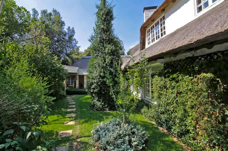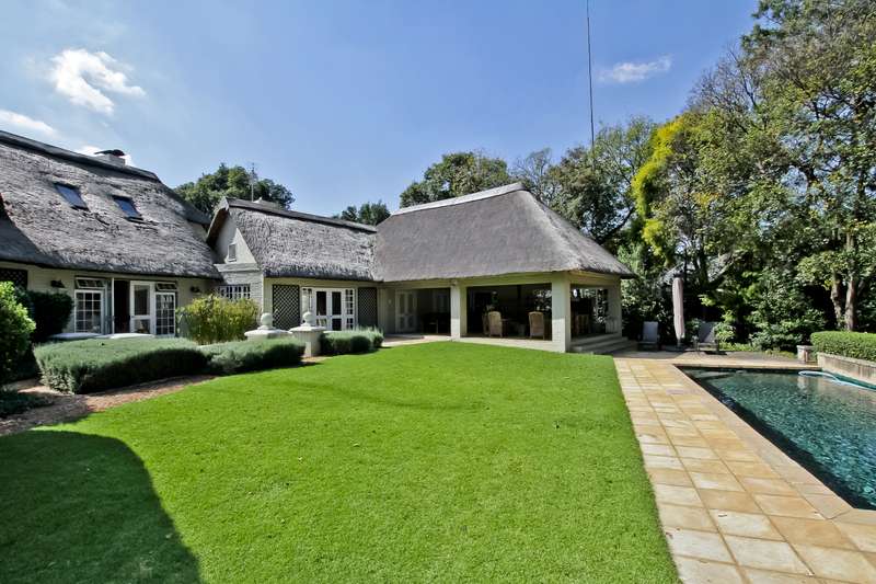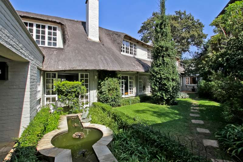 DEVELOPMENT OPPORTUNITY IN THE HEART OF SANDTON - The property has been rezoned and subdivision approved for 6 cluster stands. The existing home has true character and ambience, with fantastic reception rooms, dream kitchen and covered patio overlooking parklike grounds framed by age old trees. Entertaining in this home will be a joy all year long. Outstanding accommodation includes 4 bedrooms, 4 bathrooms, study, main bedroom with his & hers bathrooms, luxurious dressing room and garden views. The bedroom wing is secured by American steel shutters as well as security shutter to bedroom wing. The 2nd level hosts another beautiful space consisting of 3 rooms that could be used as another entertainment section, home office, or rumpus room. Additionally there is a cottage/gym with bathroom and magnificent wine cellar. Extras include: Heated towel rails, underfloor heating, electric canvas blinds on patio Inverter, borehole ready, 2 gas fireplaces, 4 garages, electric fencing and alarms including garden beams, 2 staff.