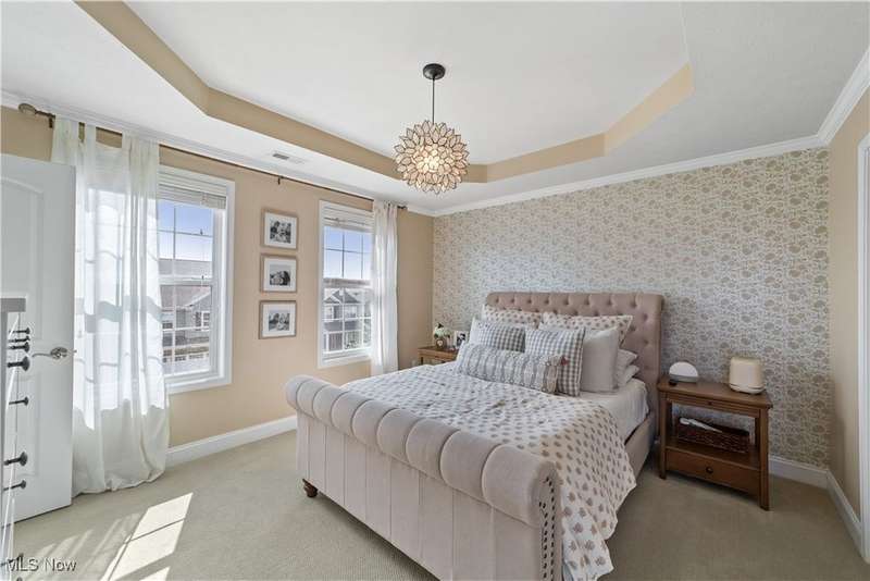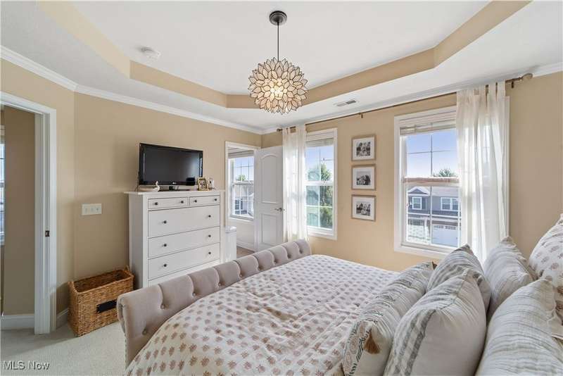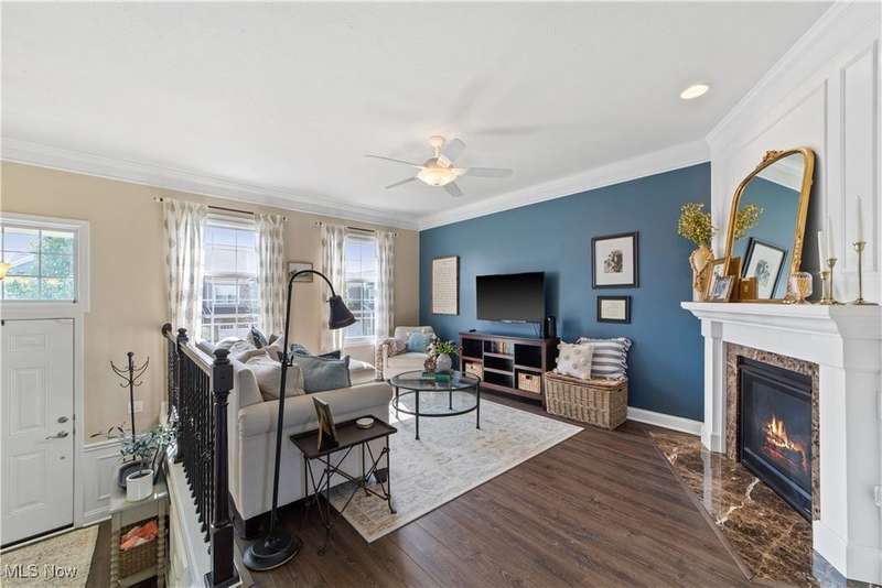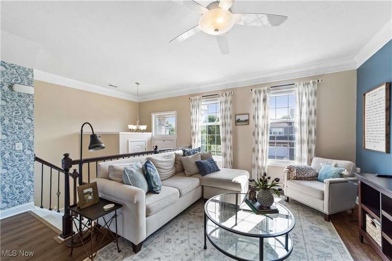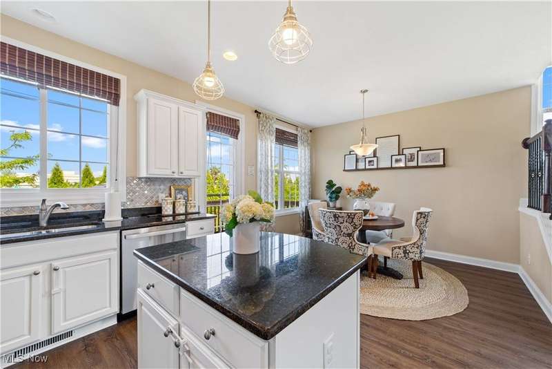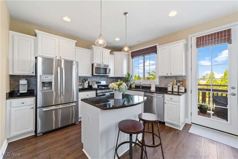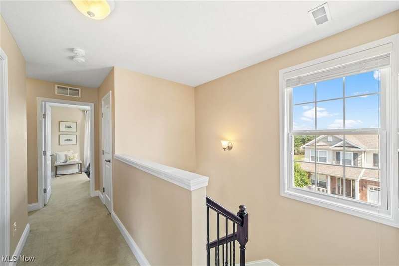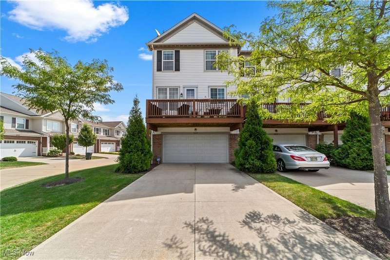 Stunning and sophisticated end unit townhome, situated in The Pointe at Sterling Lakes in Pepper Pike. This well-maintained 3-bedroom, 3.5 bathroom home is completely move-in ready with many recent updates! Step inside a beautiful and open foyer that leads up to the spacious living room, which features newer LVP flooring and a gorgeous gas-log fireplace with marble surround. Newer flooring continues through to the open kitchen and dining room spaces. The light and bright kitchen includes granite counters, tiled back splash, stainless steel appliances, and plenty of storage including extra pantry space. A rear deck can be accessed from the dining room area, providing more entertaining space during the warmer weather months. A powder room completes this main living level. Upstairs, the elegant primary bedroom features a tray ceiling, walk-in closet and en suite bath with double vanity. Two additional bedrooms, a full bath, and laundry room complete this level. In the lower level, a convenient bonus room is the perfect space for an office, playroom, gym, or additional guest space. Another full bathroom is also located within this level, as well as access to the attached 2-car garage. This low-maintenance townhouse is nearby many shopping and dining options, as well as quick highway access. This beauty has it all...do not miss this one!