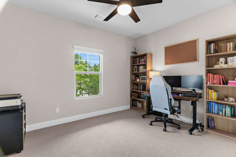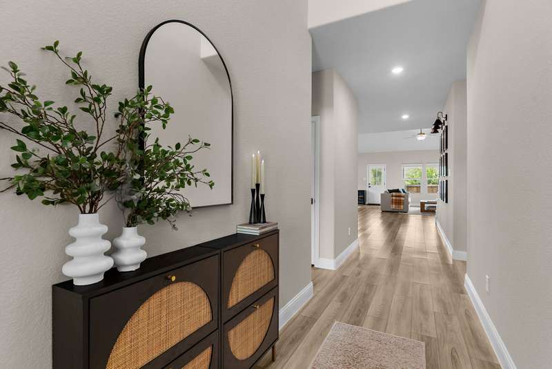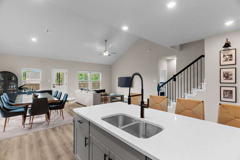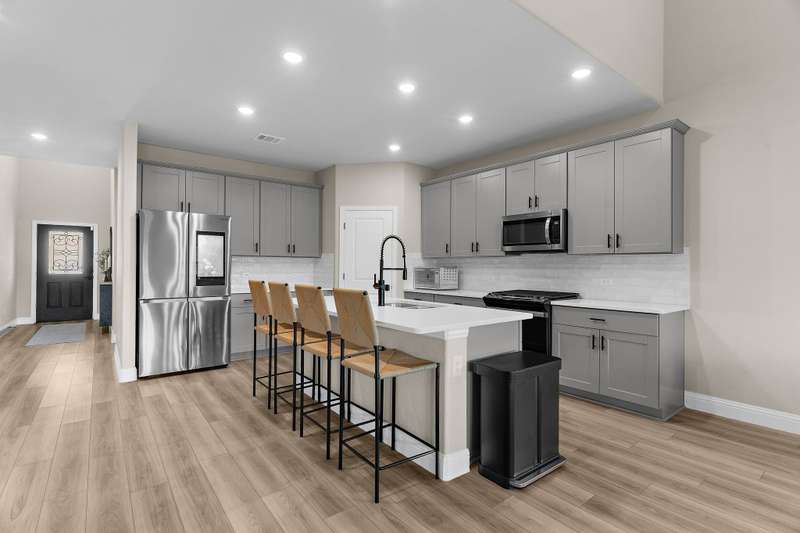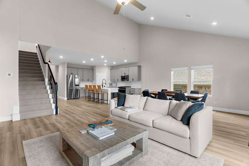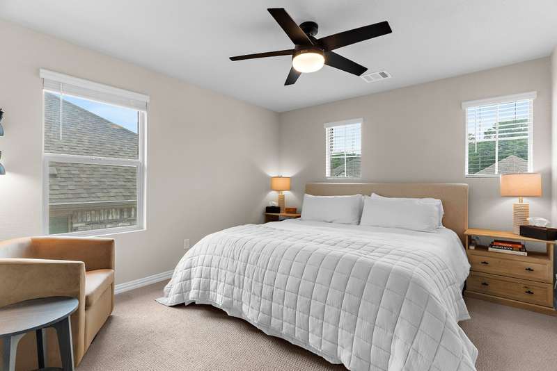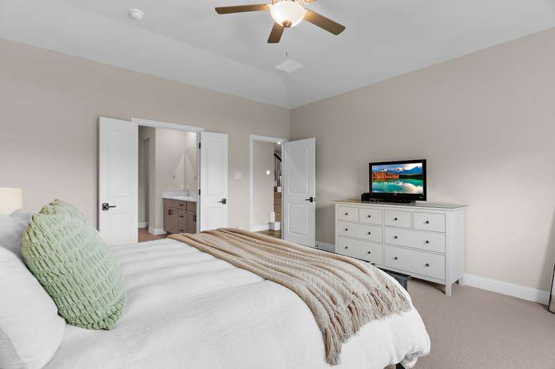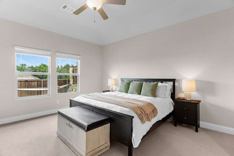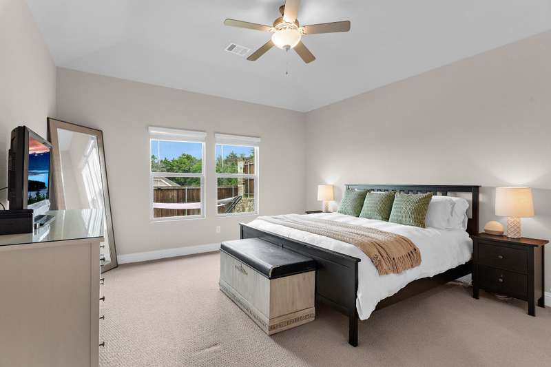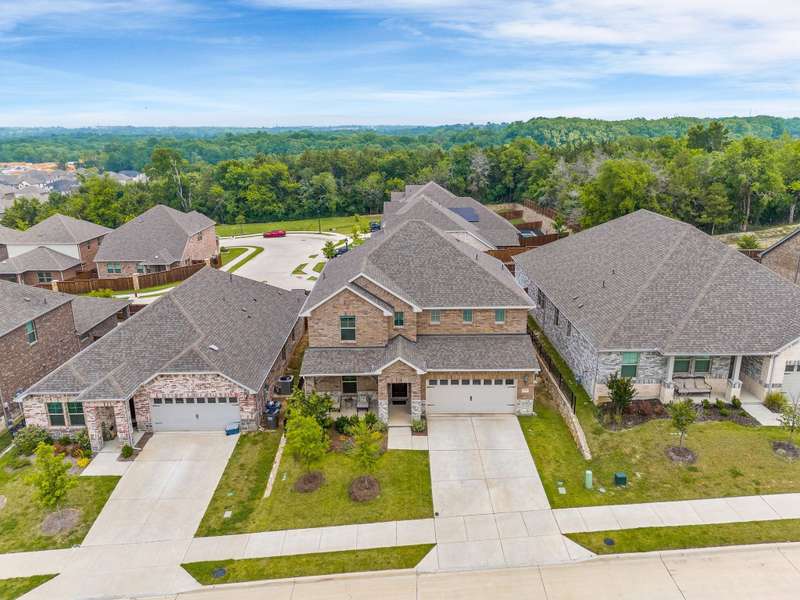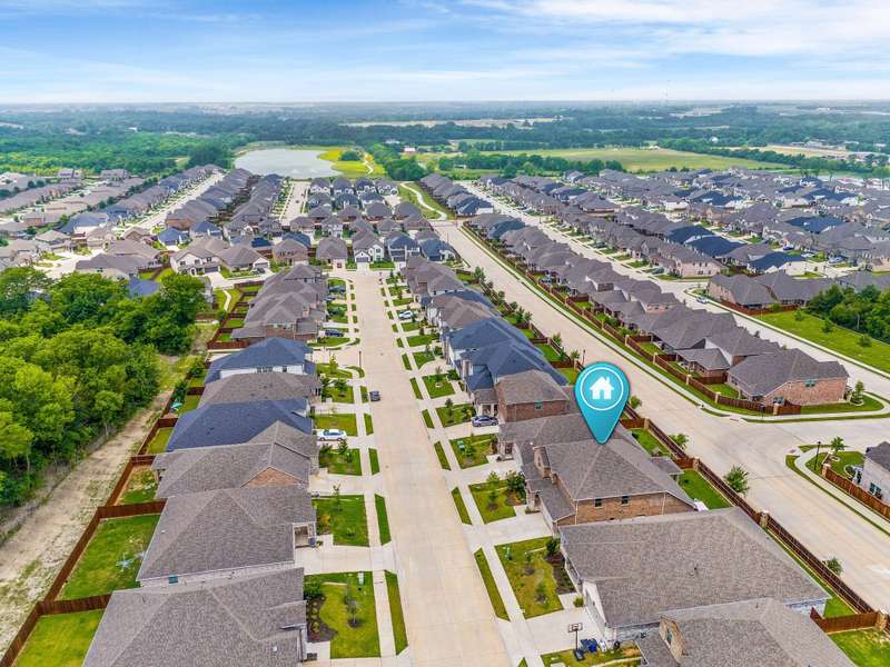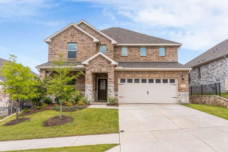 STUNNING, gently lived in, Meritage built 5 bedroom home with SUNSET VIEWS & IDEAL FLOORPLAN. Shows like a MODEL HOME and beautifully appointed with the perfect blend of style, openness and beautiful NATURAL LIGHT. Inside, you'll find a desirable floorplan that truly lives well with the spacious primary suite located on the main level along with a second bedroom, ideal for guests, multi-generational living, or a home office. Upstairs features 3 additional bedrooms and a versatile second living area or game room, offering plenty of space for work, play, or relaxing. This home impresses with its OPEN CONCEPT LIVING, stylish finishes, and energy efficient features Meritage is known for. Step outside and explore a quaint neighborhood with a SCENIC LAKE, complete with trails perfect for evening strolls and morning jogs. Off the beaten path but close to shopping, schools and highway 75. This neighborhood will attend the newly built Highland Elementary School. The refrigerator in kitchen, washer and dryer set, entry table and mirror and the large sectional upstairs are all included with purchase.