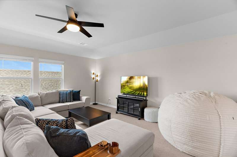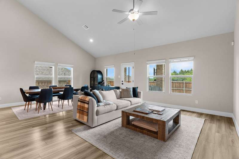 SELLER NOW OFFERING $10K INCENTIVE TOWARDS RATE BUY DOWN OR CLOSING COSTS. STUNNING, gently lived in, Meritage built 5 bedroom home with SUNSET VIEWS & IDEAL FLOORPLAN. Shows like a MODEL HOME and beautifully appointed with the perfect blend of style, openness and beautiful NATURAL LIGHT. Inside, you'll find a desirable floorplan that truly lives well with the spacious primary suite located on the main level along with a second bedroom, ideal for guests, multi-generational living, or a home office. Upstairs features 3 additional bedrooms and a versatile second living area or game room, offering plenty of space for work, play, or relaxing. This home impresses with its OPEN CONCEPT LIVING, stylish finishes, and energy efficient features Meritage is known for. Step outside and explore a quaint neighborhood with a SCENIC LAKE, complete with trails perfect for evening strolls and morning jogs. Off the beaten path but close to shopping, schools and highway 75. This neighborhood will attend the newly built Highland Elementary School. The refrigerator in kitchen, washer and dryer set, entry table and mirror and the large sectional upstairs are all included with purchase.