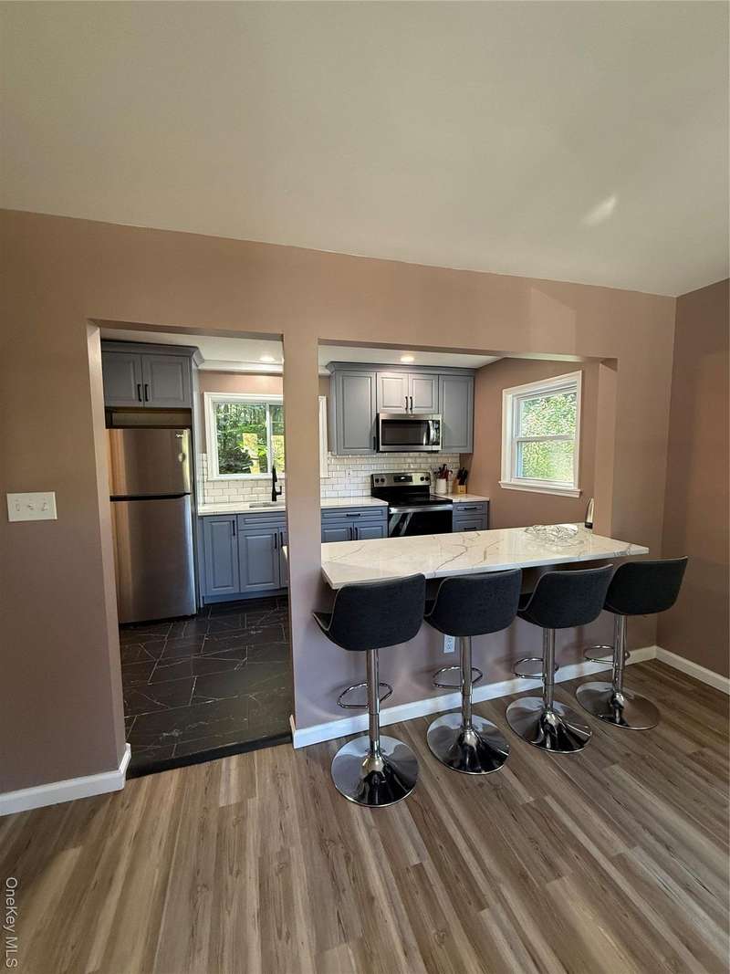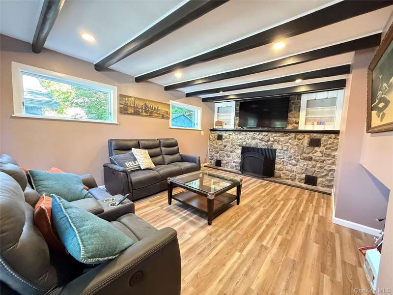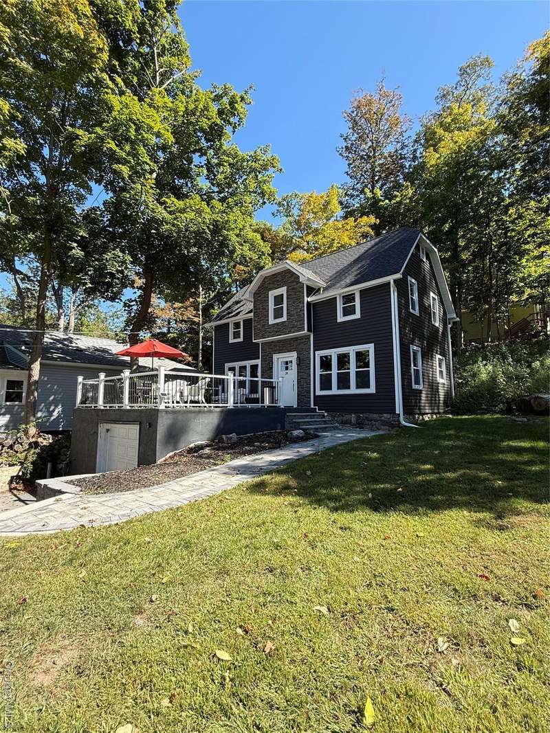 The wait is over! This stunning lakefront property comes complete with a deck, dock, and nearly everything new. Tastefully renovated, it features a beautiful living room with a fantastic wood-burning fireplace, a brand-new kitchen, 3 bedrooms, 1.5 baths, and a gorgeous patio offering breathtaking lakeside views. Hardwood floors run throughout the home, and there's plenty of storage space in the downstairs garage. Enjoy walking to nearby restaurants, bars, and social events. This one won’t last long – perfect for commuters!
