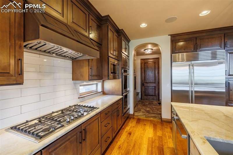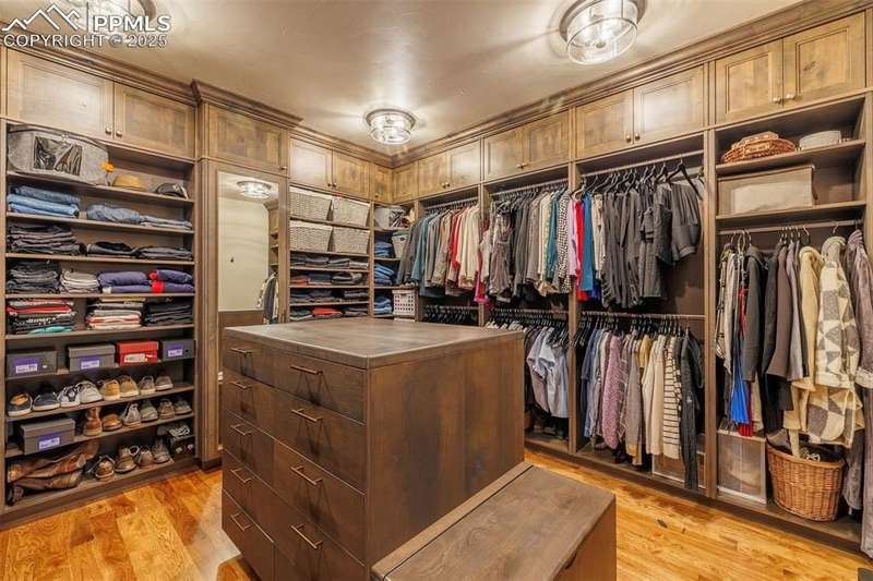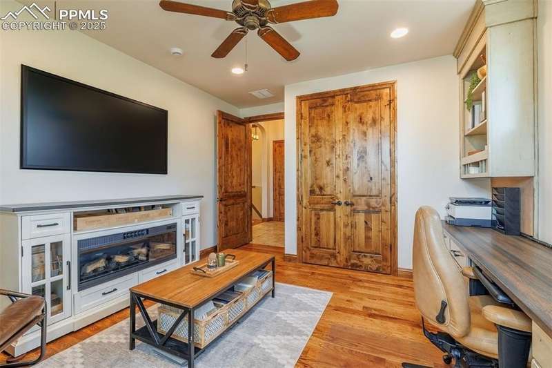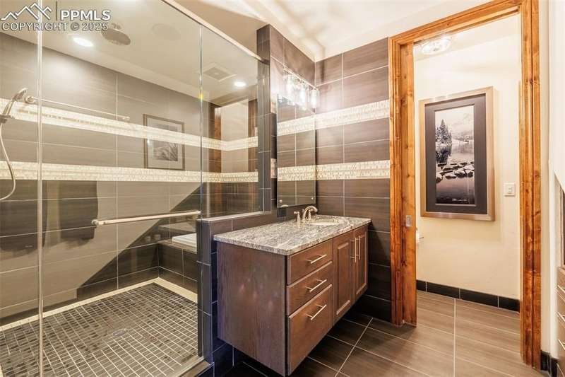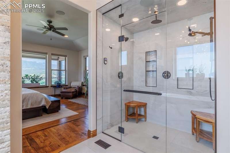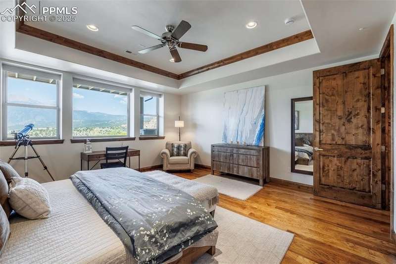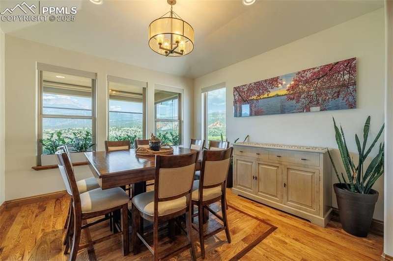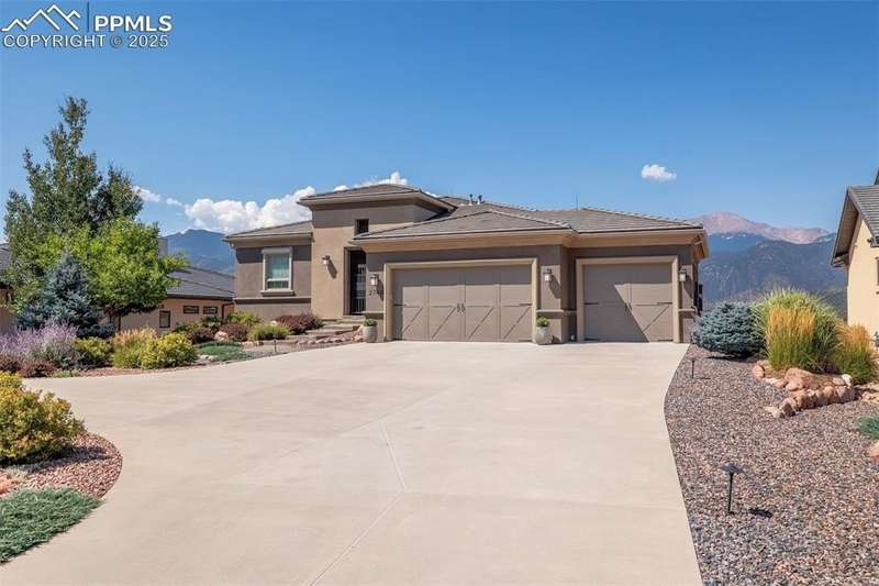 Unobstructed, straight-on view of Pikes Peak and Garden of the Gods!!! This gorgeous custom-built ranch home on the ridge of the exclusive gated-community of Cathedral Ridge at Garden of the Gods is a show stopper! Main level living offers a Great Room w/ gas fireplace, laundry room, 1/2 bath, Gourmet kitchen w/ Taj Mahal quartzite countertops, counter-to-ceiling cabinetry, expansive island w/ seating, stainless steel appliances & under cabinet lighting. Primary Suite w/ generous walk-in closet, double-sided gas fireplace, and ensuite spa bath w/ heated flooring, zero-entry steam shower, and soaking tub. Finished basement highlights a Family Room w/ gas fireplace & built-ins, two bedrooms that share a full bath, and a storage room. Back deck oasis will blow you away showcasing three separate areas (dining area, cozy fire pit, and conversation sitting area) for outdoor entertaining right on the edge of the Mesa! Lower covered patio w/ sunken hot tub. Three-car attached garage w/ Tesla EV charging station & epoxy floors. Home amenities include central air, solar panels, lightning mitigation system, Class IV hail resistant tile roof, emergency generator, surge and EMP protector, safe room, Rolladen hurricane shutters, extra wind protection, foam insulation construction, radon mitigation system, Crestron home automation system, two water heaters, reinforced stairwell walls, exterior holiday Jellyfish lighting, humidifier, and Mortise locks on front door & garage. HOA dues include gated security, snow removal on private streets & trash removal. Walking distance to the Garden of the Gods Club & Resort, which offers numerous amenities including spa, gym, swimming pools, hot tubs, pickleball & tennis courts, and fine dining, with club membership. Plentiful hiking & biking trails close by. Excellent location only minutes from downtown, Manitou Springs, & Kissing Camels Golf Club. Rare opportunity to acquire a one-of-a-kind property on the rim in exclusive Cathedral Ridge!