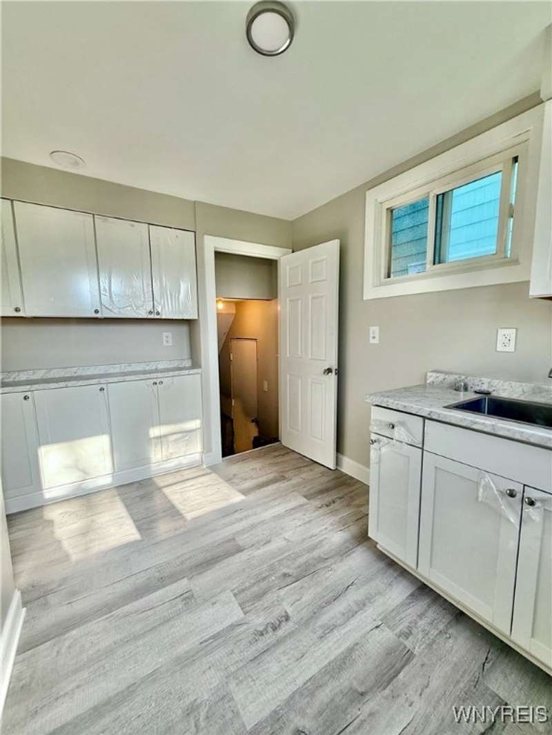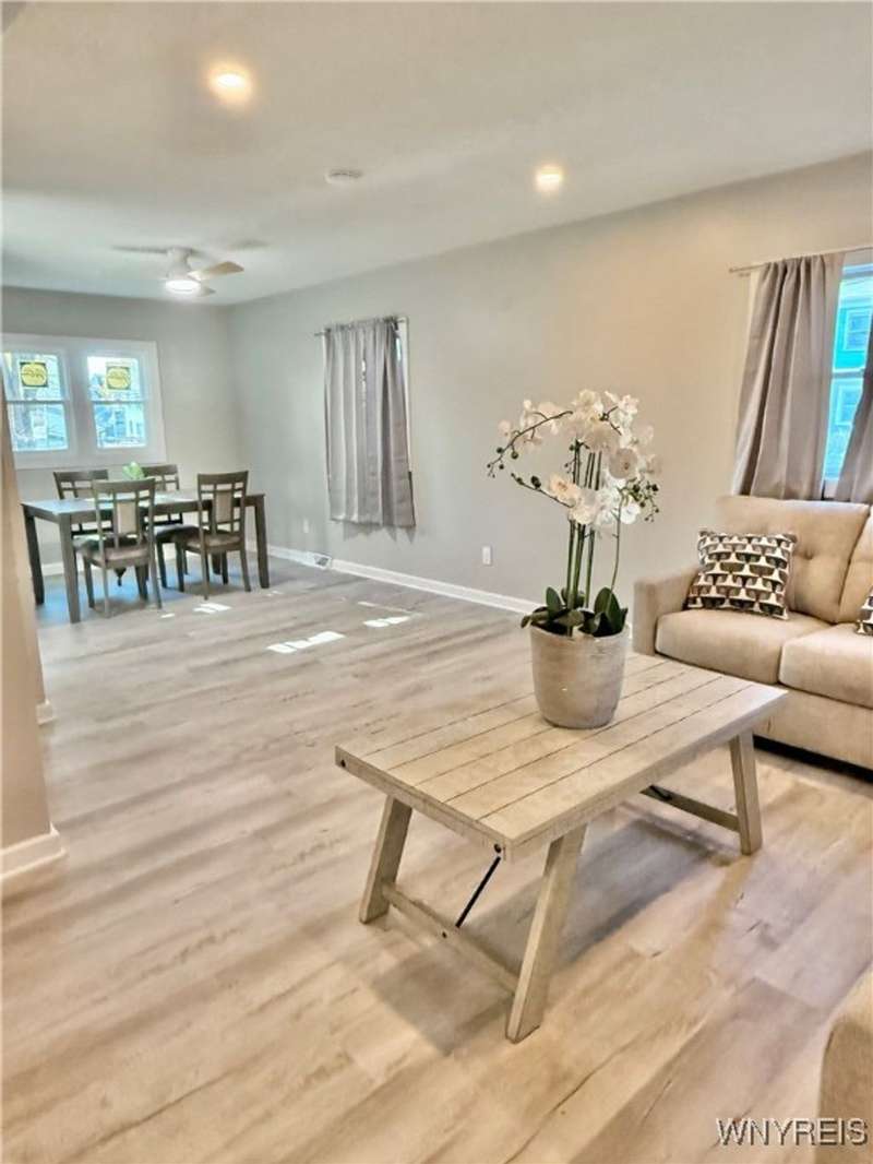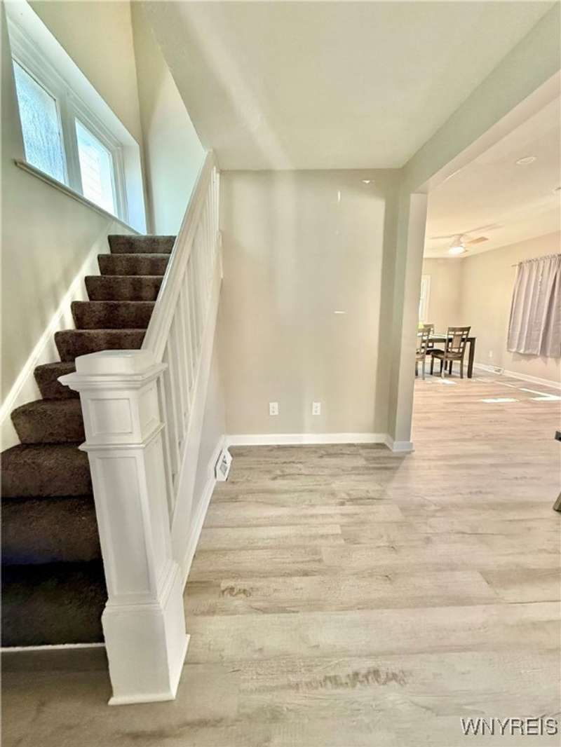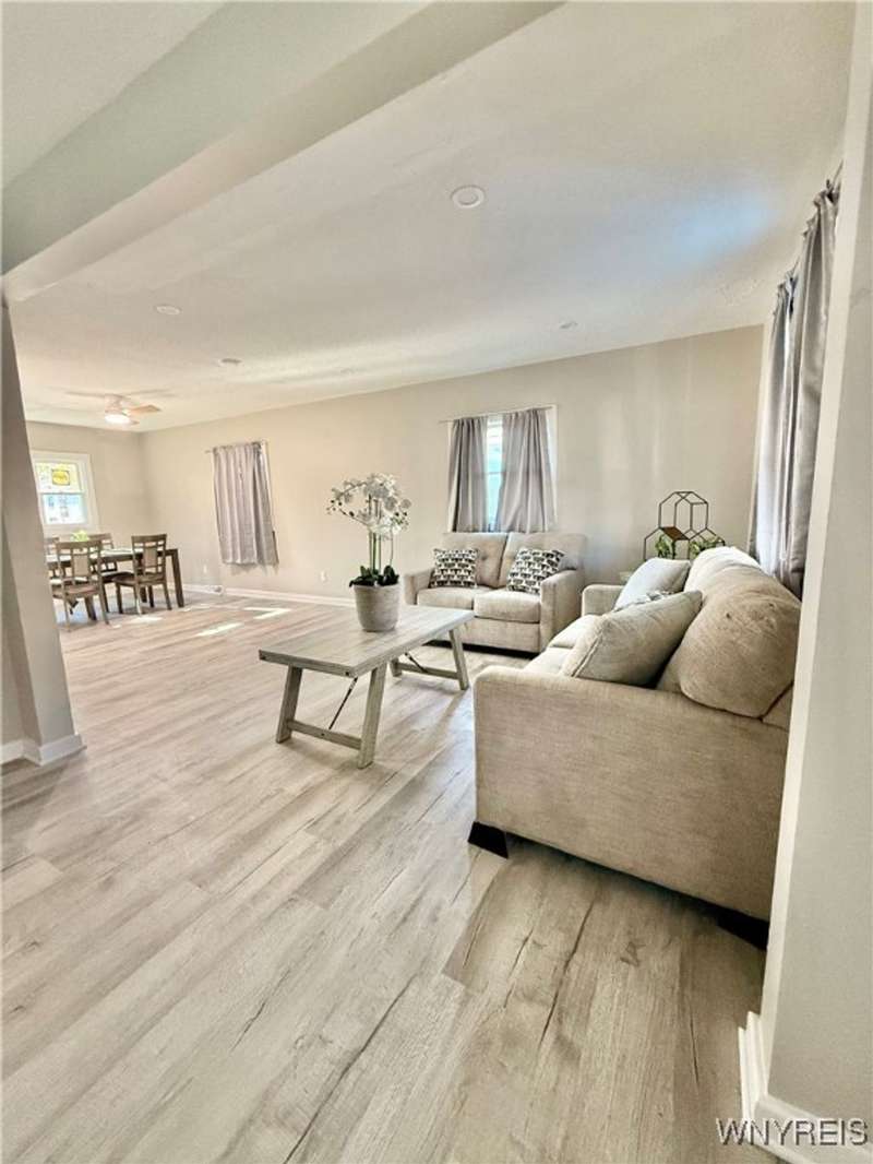 Welcome to your very own 3 bedroom, 1 bath, fully renovated home! Refreshing updates include NEW kitchen, luxury vinyl flooring, vinyl windows, overhead lighting, and electrical throughout. Bright, spacious living room opens to dining room and eat-in kitchen. Newly carpeted stairs lead to three bedrooms and full bathroom. Dry basement with high ceiling perfect for additional storage. Huge yard! Don't miss out on this opportunity! Offers due Friday, November 14th @ 11AM.