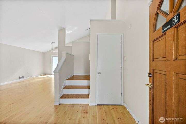 Welcome to this beautifully maintained 3 bedroom, 2 bath home that truly checks all the boxes. Vaulted ceilings + hardwood floors + fresh paint give it instant charm, while AC keeps you cool and a pellet stove keeps you cozy. The kitchen shines with granite countertops and stainless steel appliances, offering both style & function. Upstairs you’ll find the large primary suite w/full bath, walk-in closet & private deck. 2 additional bedrooms & a full bathroom. Step outside to a deck that includes garden boxes & a huge backyard offering plenty of room to play, and perfect for gatherings. Tucked in a quiet neighborhood with no HOA and close to amenities—this is home sweet home.