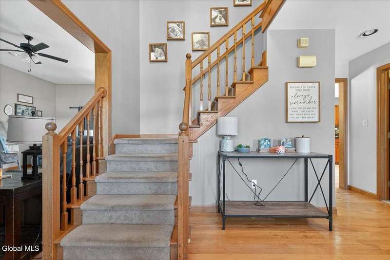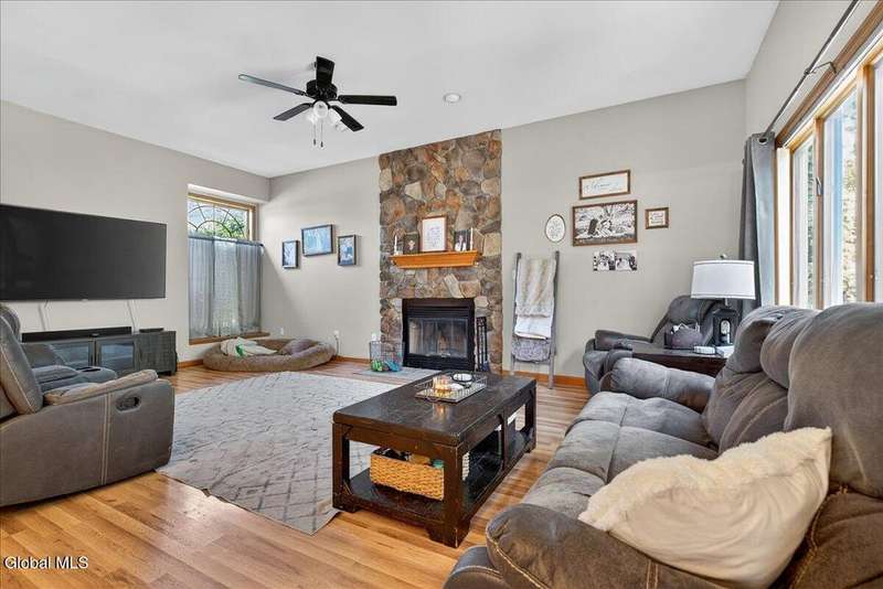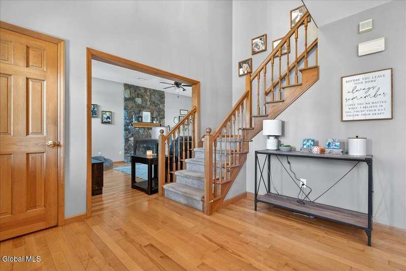 Welcome to this beautifully maintained 3-bedroom home offering 1,900 square feet of comfortable living space, plus a full finished basement and unfinished bonus space ready to be transformed into even more living area. Located in a desirable Halfmoon neighborhood, this property blends charm, functionality, and room to grow.Enter the bright open foyer and imagine the holiday decorations on the open staircase. Beautiful hardwood floors flow from the entry to dining room and on to the living room. The spacious living room features a stunning stone-surround wood-burning fireplace?perfect for the upcoming cool weather. The kitchen boasts custom cherry cabinetry, a breakfast nook, and doors leading to a serene screened-in porch with rich mahogany flooring and wood ceiling. A first floor guest half bath offers convenience for all.Upstairs the primary bedroom with tray ceiling and generous closet space has access to the spacious shared full bath with jetted tub, walk-in shower and dual vanity. The 2 additional bedrooms are larger than most and have lots of closet space. Additional 2nd floor unfinished bonus space with plenty of headroom to finish for a fun space or additional storage. The full basement includes a family room ideal for privacy, play or working out.Located in the Mechanicville School District, this home offers the perfect setting on a level, landscaped .29 acre lot... just enough but not too much to maintain. Inground sprinklers are a plus. Relax on the front porch and watch the flowers grow or enjoy the backyard patio and lawn, with plenty of room for pets or play. Handy shed for additional storage plus 2 car garage. New furnace and central AC installed in 2018. Public water and sewer. Enjoy the perfect blend of comfort, style, and future potential. Make an appointment today and check it out in person... you'll be glad you did!