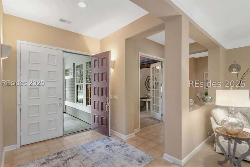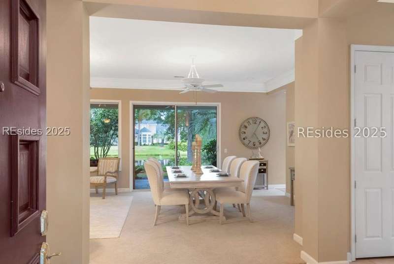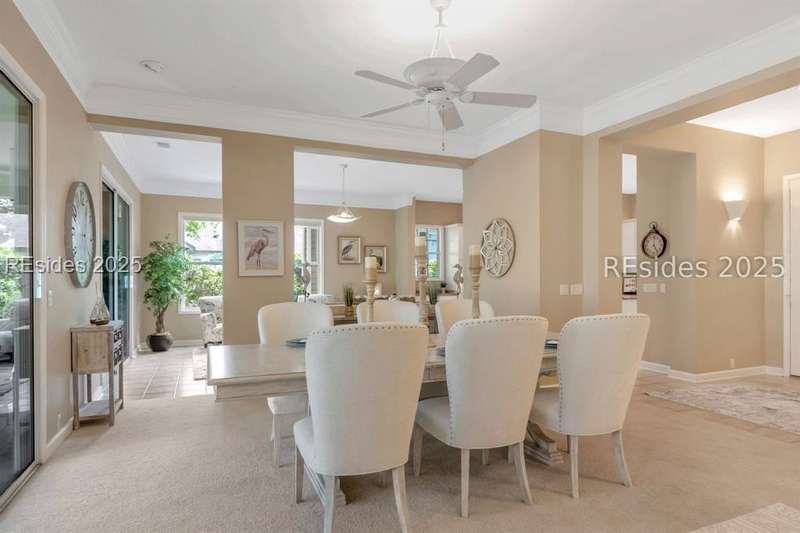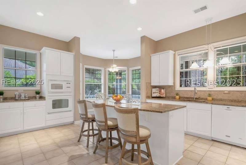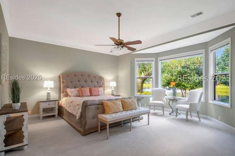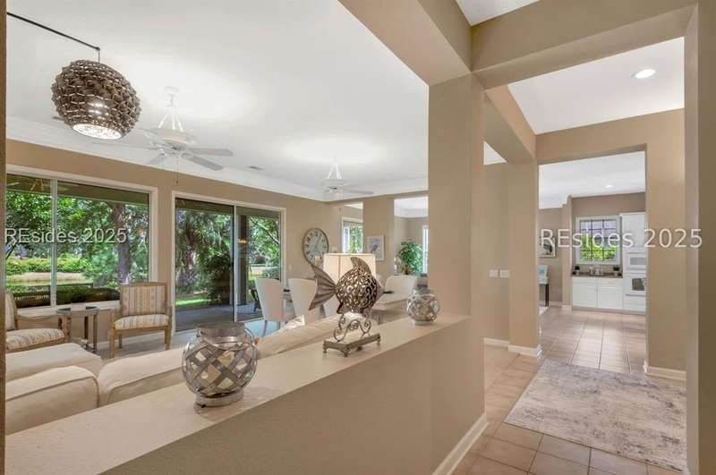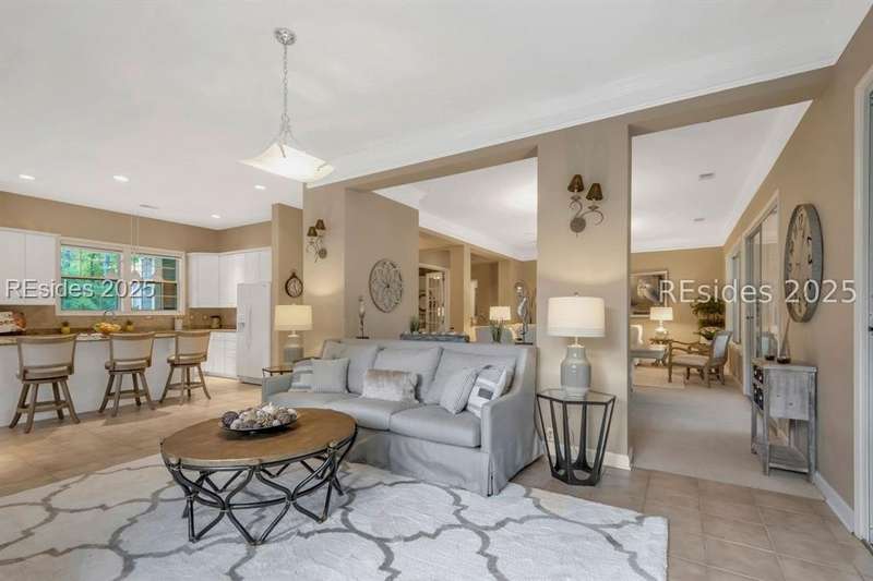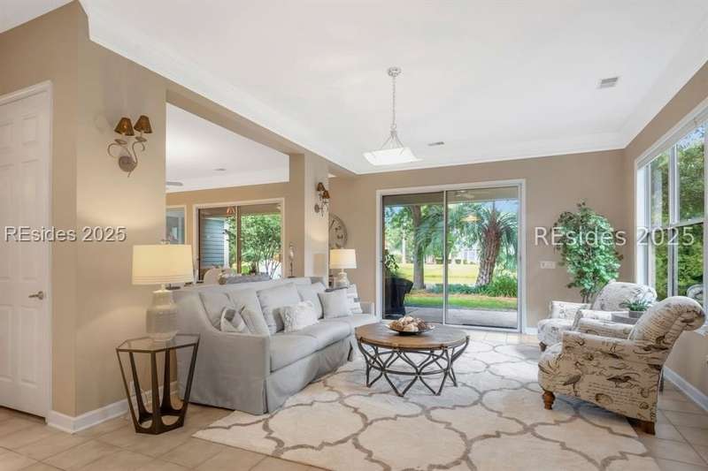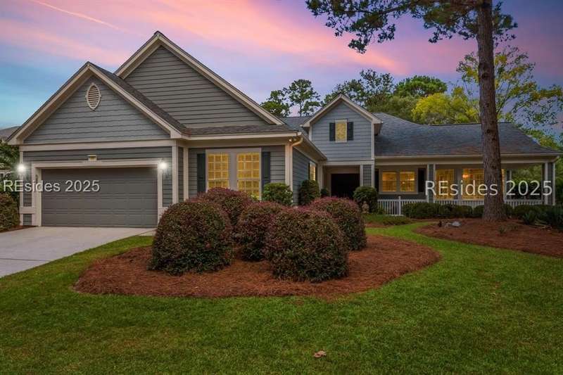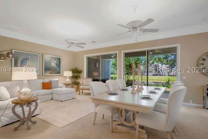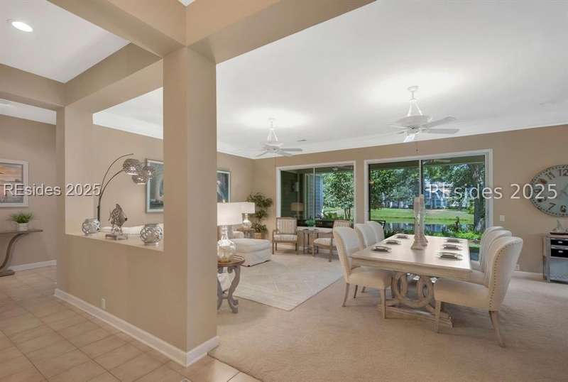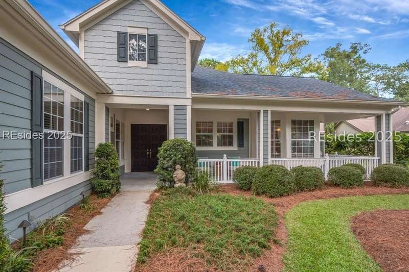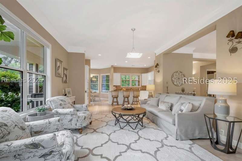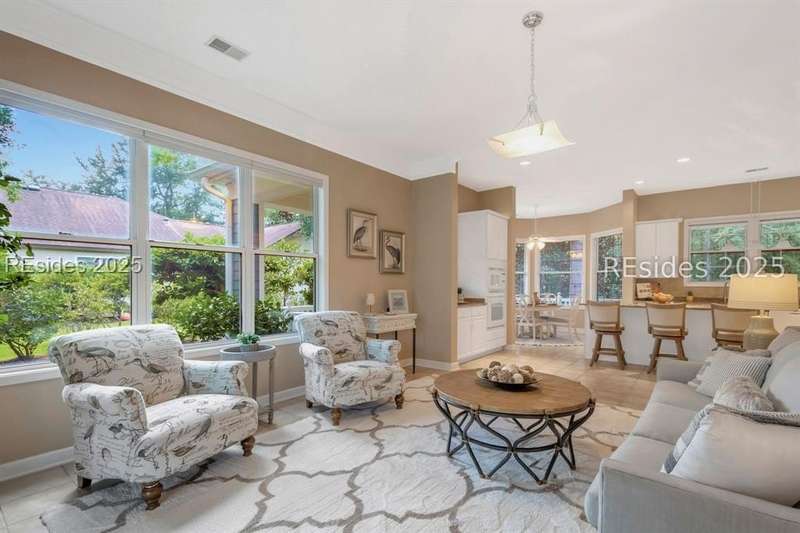 Unbelievable lagoon views from almost every room!!! This popular Galleon model is located on a private cul-de-sac across from wooded green space island. 3 bedrooms, 2 1/2 baths PLUS office/library. Living room/ dining room, Family room off kitchen with spacious breakfast nook. 10 ft ceilings, covered front and back porches, 2 car garage with golf cart bay. Enjoy living in the upscale riverfront community of Riverbend with all of the amenities that Sun City offers.... Low HOA fees and Beaufort County taxes!!!