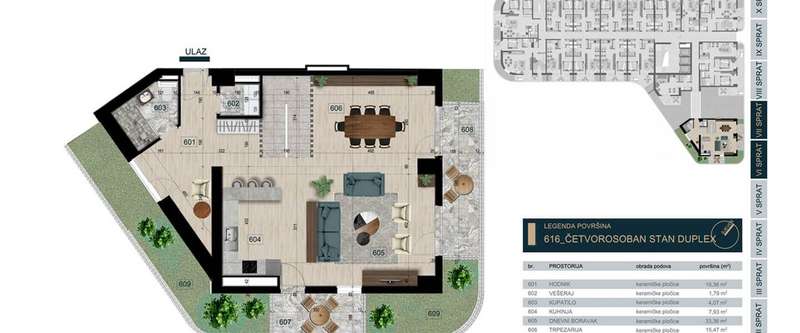 * Apartment 616 (6th Floor) - 253.43m2 (61.03m2 green terrace) - €582,882