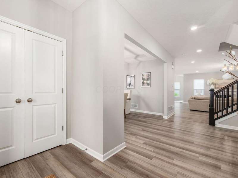 Why wait to build when this gorgeous home is ready for you to move into?! Step up to the covered front porch and into the wide front hall & on to LVP flooring that flows throughout most of the main level. The dining room has transom windows and flows into the open great room/kitchen/sun room. The white island kitchen has quartz counters, corner pantry & stainless steel appliances & opens to the great room, highlighted by the gas fireplace. The hearth/sun room opens to the sliding door that leads out to the paver patio. The rest of the main floor living space features a private office plus a mud room. Upstairs opens to a large loft/rec space. There are four bedrooms, the large owner suite which opens to the tiled owner suite bath & large walk in closet. There is also a bedroom w/a walk in closet & ensuite bath. The third bedroom is adjacent to the hall bath & is currently being used as an office. The fourth bedroom has a large walk in closet. Outside is a newly built huge paver patio complete with knee wall and firepit-perfect for enjoying a cool fall evening! No rear neighbors! This one is absolutely gorgeous and ready for a new owner!
