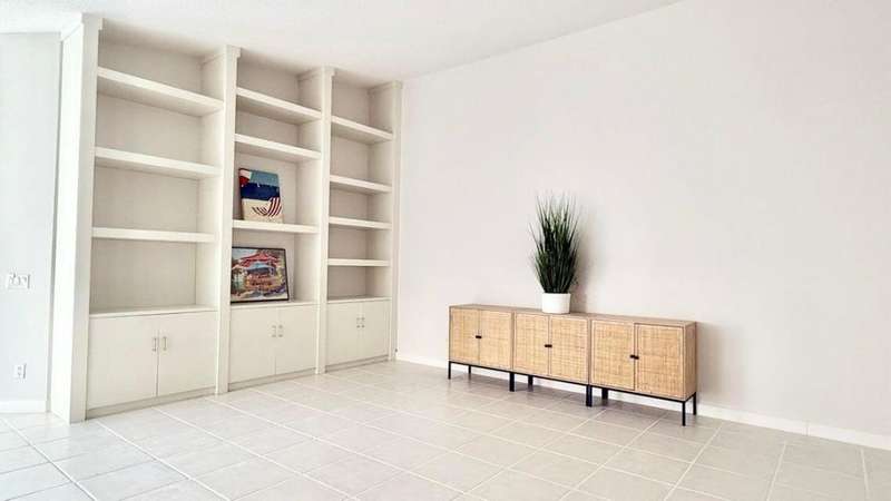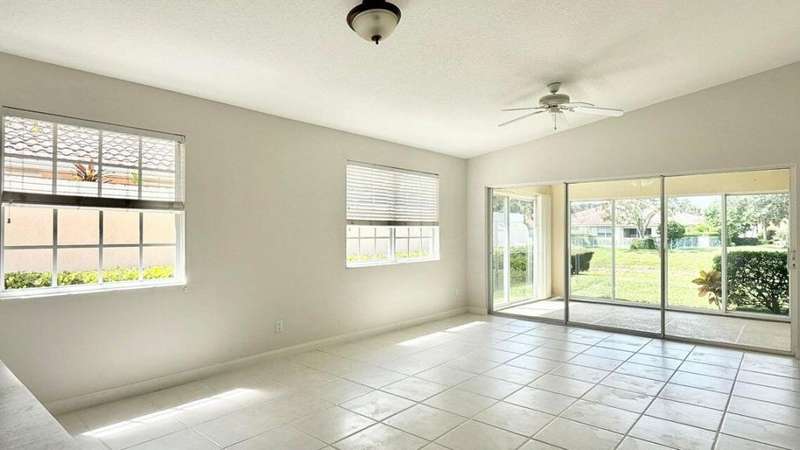 Welcome to this stunning villa that blends comfort and style with serene lake and bridge views. Featuring an open floor plan with vaulted ceilings, this home is perfect for entertaining or relaxing in your own private retreat. Highlights include-Spacious Great Room with custom wall unit and tile throughout the main living areas-Brand-new luxury plank vinyl flooring in both bedrooms-Principal suite with a large walk-in closet, en suite bath with double vanity, and walk-in shower-Guest bedroom with private bath, shower/tub combo, and walk-in closet-Lanai with sliding glass doors, creating a bright sunroom to enjoy year-round-Private backyard offering peace and privacy.