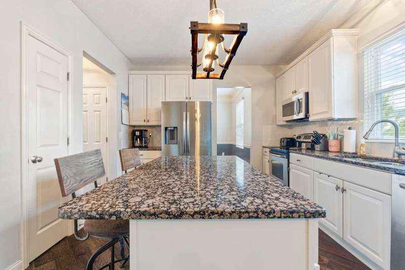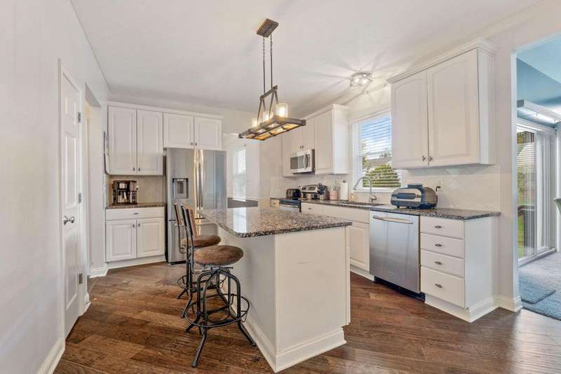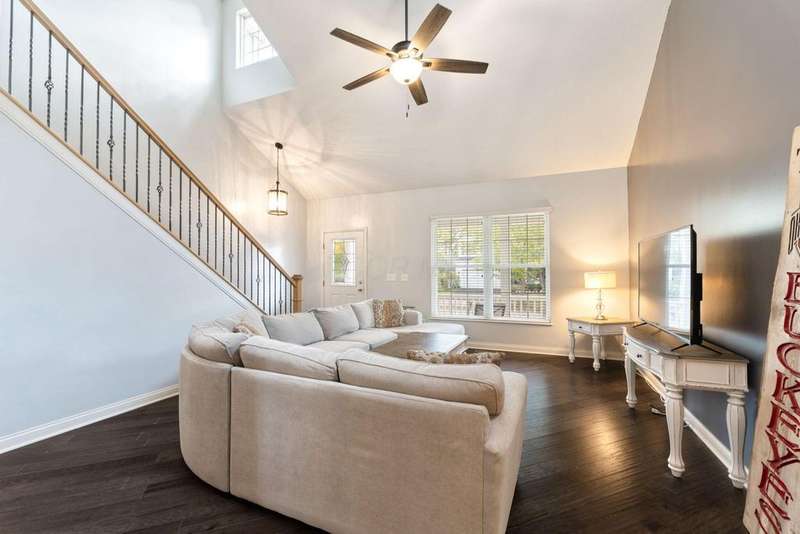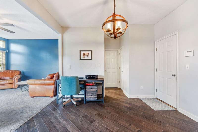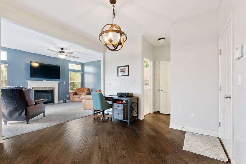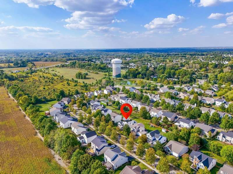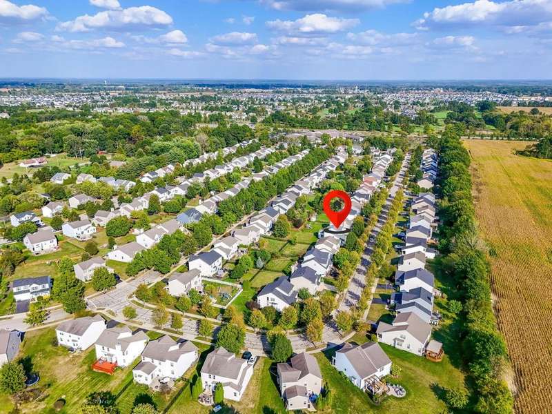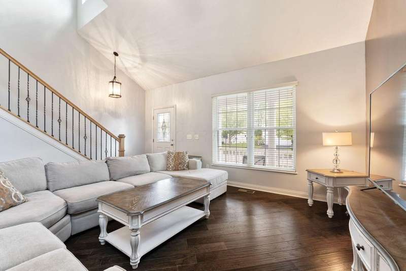 This spacious 4 bedroom, 2.5 bath home boasts a vaulted open floor plan filled with upgrades. A dramatic two-story entry sets the tone, complemented by crisp white trim and six-panel doors throughout. The gourmet kitchen features 42'' cabinets, granite countertops, stainless steel appliances, a large island with pendant lighting, and a generous eating area.Hardwood floors flow through the front entry, kitchen, and formal dining room. The family room opens seamlessly to the kitchen and showcases a cozy gas log fireplace.Upstairs, the vaulted owner's suite offers a large walk-in closet, whirlpool soaking tub, and separate shower. Three additional bedrooms and a full bath complete the second floor.The full basement includes a rough-in for a future bath, while the stamped concrete patio provides a private outdoor retreat?perfect for entertaining. NEW ROOF April 2024. Home Warranty Provided through HomeGard.This home is designed for both everyday living and memorable gatherings?don't miss your chance!