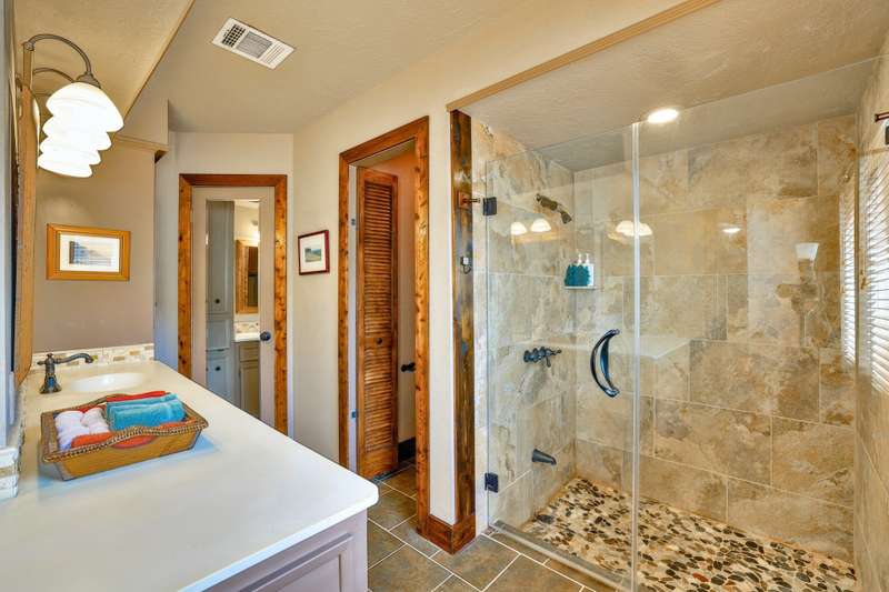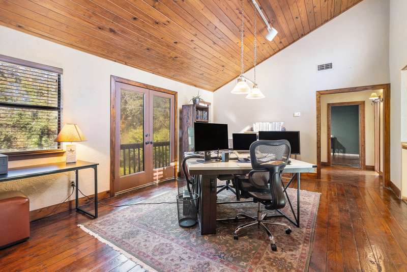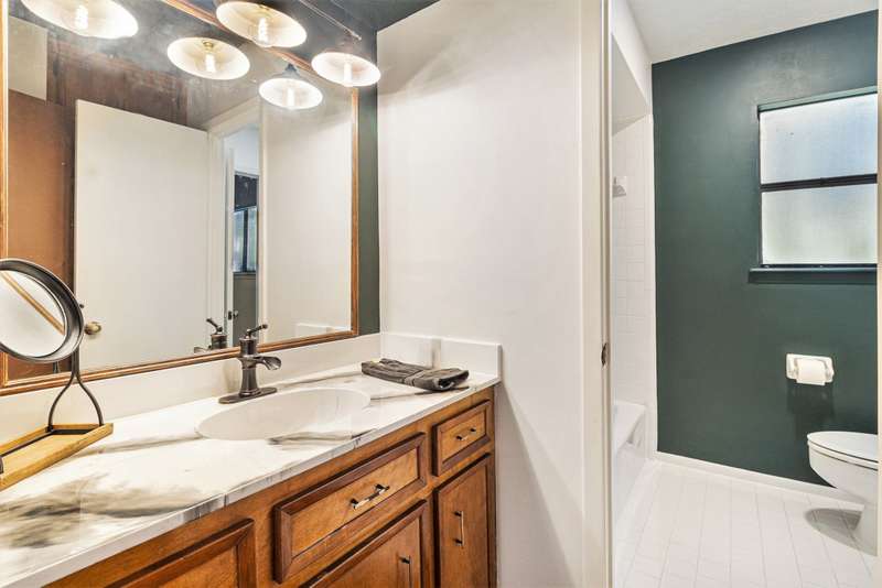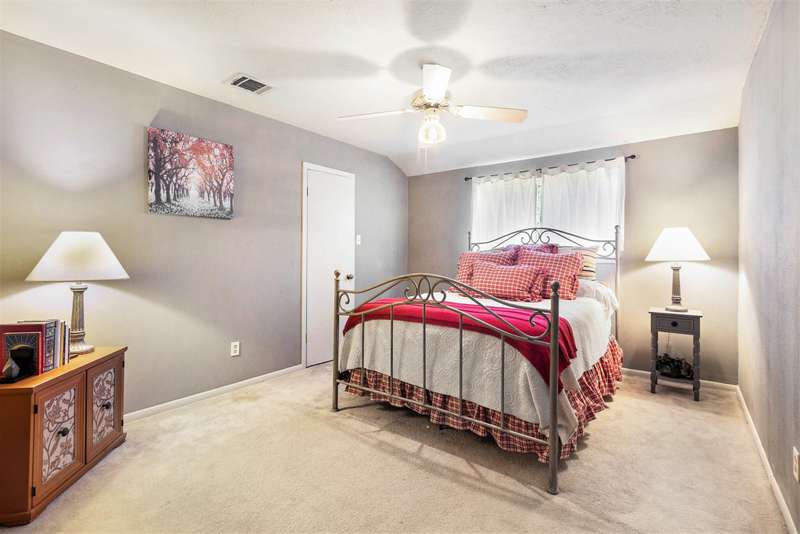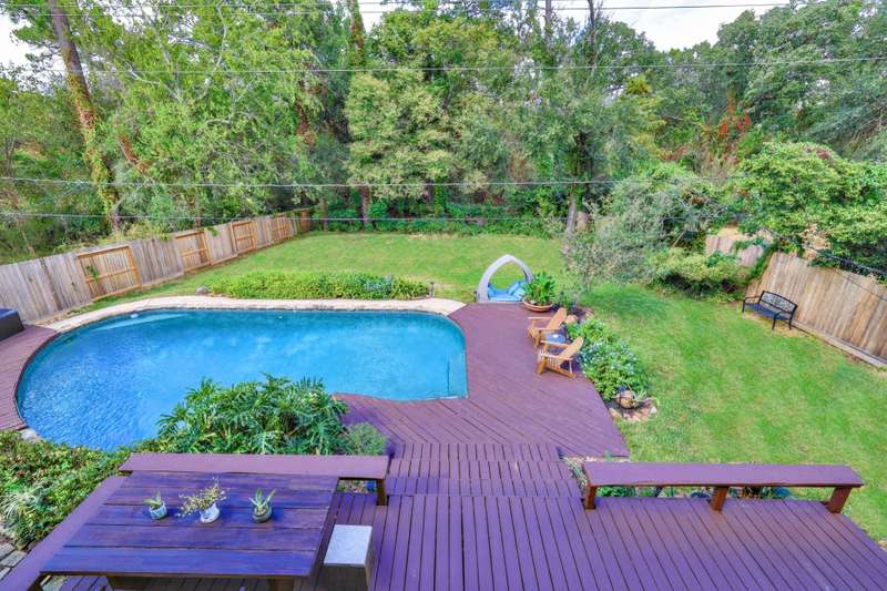 This peaceful North Houston retreat offers a blend of charm, comfort, and updates, complete with a sparkling pool + beautiful views of the wooded greenbelt behind the home. Inside, you’ll find soaring ceilings + warm natural light. The home features a new roof, new condenser, freshly built fencing, and a restained wood ceiling that stretches dramatically from the living room to the upstairs office. 2 upstairs bathrooms have been transformed! One with a new walk-in shower, new floors, walls, + vanity, while the other has a new vanity area, hardwood floor restoration, + removal of old carpet. One upstairs bedroom has restored flooring, fresh paint + new lighting. Other updates include the primary bath and 2 bedrooms upstairs, plus the outdoor living shines with a restored balcony and a wood deck with built-in benches. Perfect for relaxing under the trees or entertaining by the pool. Don't miss this lovely home with a patio/deck, study, large backyard, walk-in closets + premium counters