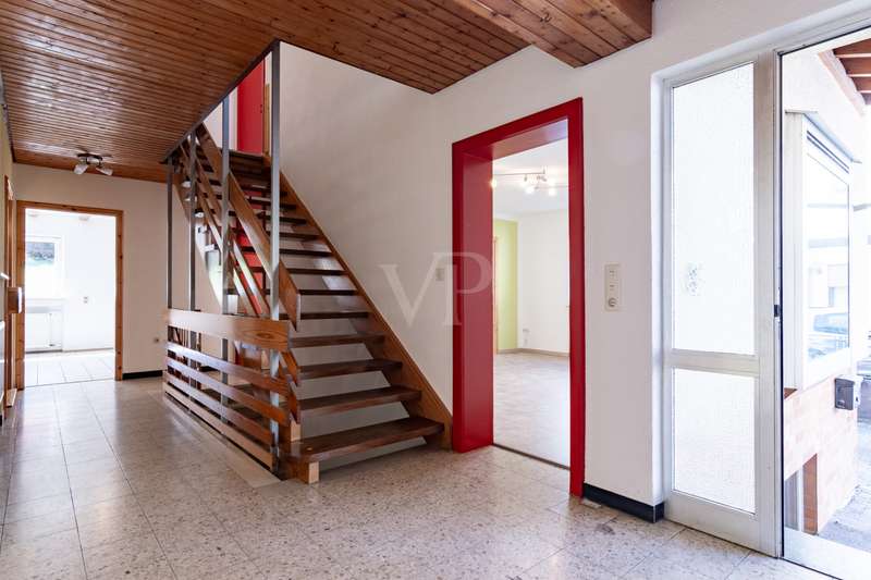 In the heart of the picturesque Southern Palatinate, in Annweiler am Trifels, stands this residential and commercial building with an attractive room layout and versatile usage options. The property combines commercial and residential use on three floors and also offers generous usable space in the basement as well as a functionally designed outdoor area with a large garage and two parking spaces. The first floor with approx. 103 m² of commercial space has two separate entrances - a street-side entrance to the retail unit for customer traffic and a separate entrance in the courtyard. The store unit was extensively modernized in 2013 and boasts efficient interior insulation, durable laminate flooring and high-quality wood-aluminium composite window elements. An electrically operated blind for the shop window provides effective sun protection. A charming flower window with wooden glazing creates a pleasant ambience. The adjoining hallway, laid with classic stone tiles, connects the store and adjoining rooms in a functional way. There is also an office on the first floor, which is fitted with vinyl flooring from 2014 and wood-aluminum composite windows. Adjacent to this is a modern tiled shower room with electric underfloor heating and a separate WC. Both were extensively renovated in 2014 and fitted with contemporary sanitary installations. The space on the first floor is rounded off by a fitted kitchen with all the necessary electrical appliances. This unit is approved for commercial use. In order to use it as living space, a conversion application would have to be submitted. A wooden staircase leads to the upper floor with approx. 124 m² of living space. Here you will find three well-proportioned rooms, a spacious living/dining area, a bathroom with bathtub and a room for a kitchen that still needs to be fitted. The living/dining area, which was added in 2014, boasts high-quality cork flooring and triple-glazed plastic windows with electric shutters. From here, you step directly onto the large roof terrace with a view of the Palatinate Forest. This floor could be separated from the first floor and used as a separate unit. It would be possible to enter the apartment from the large steel staircase on the right-hand side of the house. This steel staircase currently only serves as access to the top floor. On the top floor, you first enter the kitchen with a modern fitted kitchen (included in the purchase price). A hallway then leads to three well-designed rooms that offer enough space for individual use. The top floor also has a spacious living room with access to the loggia and a shower room with washing machine connection. A total of approx. 88 m² of living space is available here. Overall, this property offers an excellent opportunity to combine living and working under one roof. Whether for owner-occupiers who want to combine their home with their own business, or for investors who want to benefit from the wide range of possible uses - this property impresses with its flexibility.