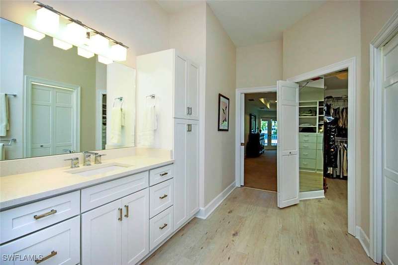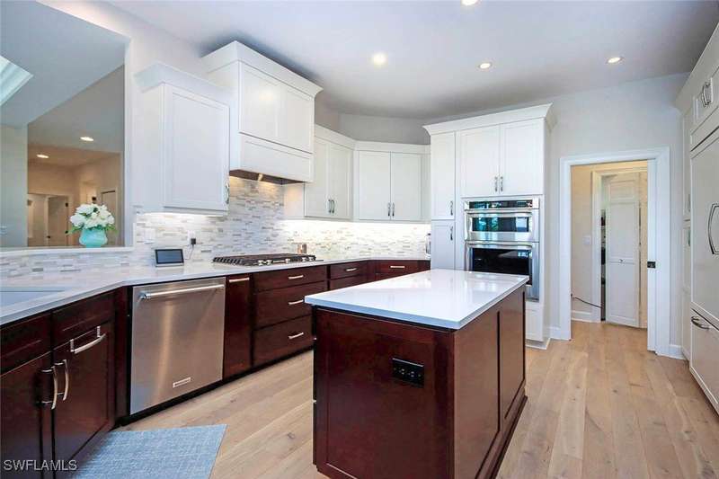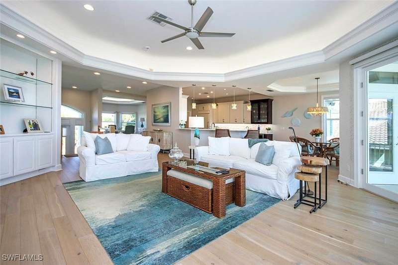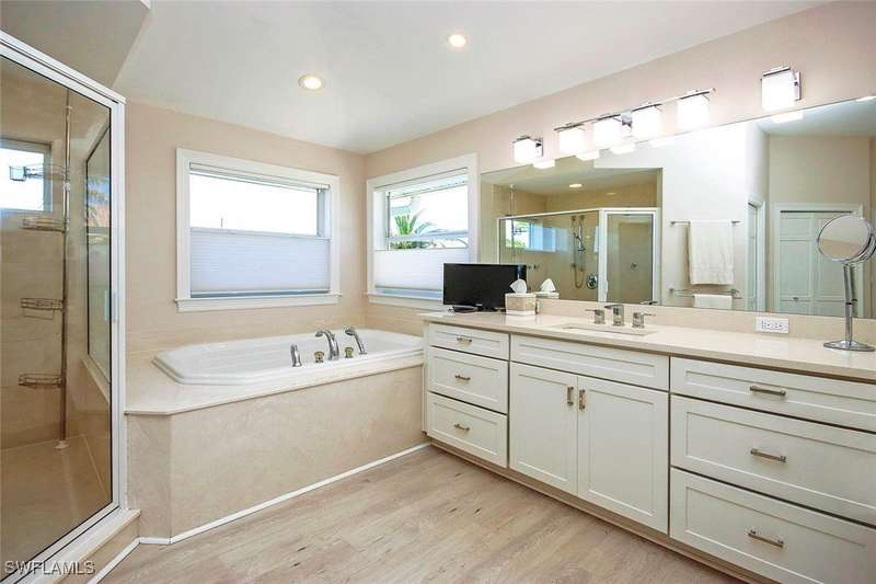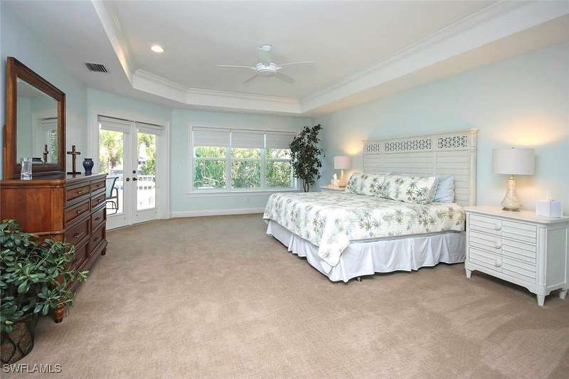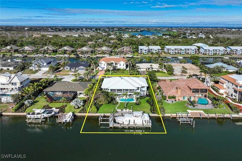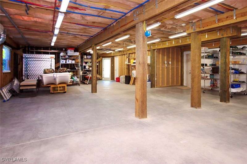 Nestled on a coveted deep-water canal basin on Sanibel Island, 877 Limpet Dr. is a boater's paradise with luxury throughout. This elevated 3,286 sq. ft. home, remodeled in 2019 by Kennedy Const., blends modern elegance with functionality. This home is on a concrete seawall and boasts a 45ft slip designed for a 30K lb. lift, an adjacent 10K lb. lift for a fishing boat, and a 3-car-sized boat trailer garage alongside a 3-car-plus garage, both with A/C storage. Enjoy direct, no-bridge Gulf access in just 5 min. and with the services of the Sanibel Marina only 500 yds away, adventures begin at your doorstep. Inside, a great room opens to a chef's kitchen with custom cabinetry and waterside dining area, perfect for entertaining. Other key features include European white oak floors, impact windows, powered storm shutters, a spacious rec area, pool, patio, and deeded beach parking and access a mile away. Additionally, this home has a 24KW Generac generator with two propane takes totaling 1250 gal. The 45 foot boat slip was designed for a 30K lift and has a pedestal with (2) 30amp and (2) 20amp outlets. The existing 10K lb. lift adjacent to slip has (2) 15amp outlets. Lower level has 3 mini-split units for A/C. Located on Sanibel's East end, this home is just 550 yards from Sanibel's Causeway Blvd and 1.5 miles from the Sanibel Lighthouse. Explore 25 miles of bike paths and J.N. "Ding" Darling Refuge. This waterfront gem offers unmatched design and boating amenities!