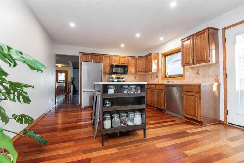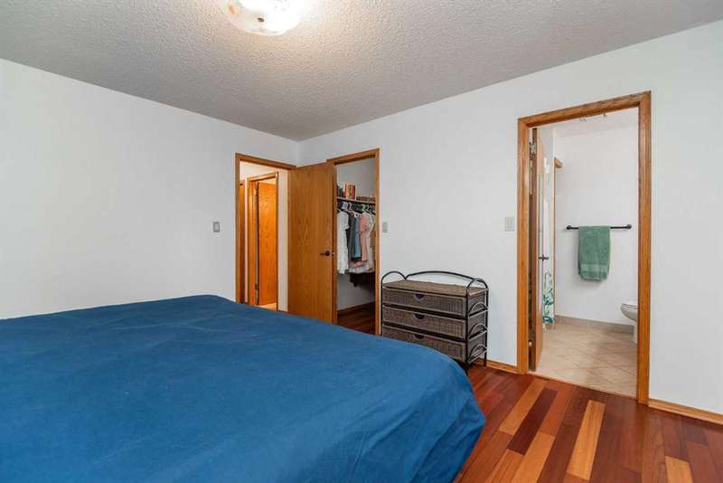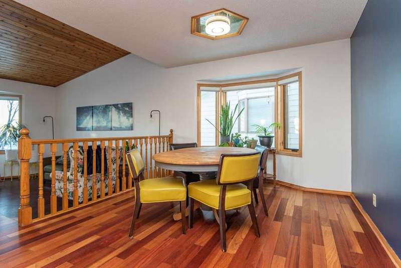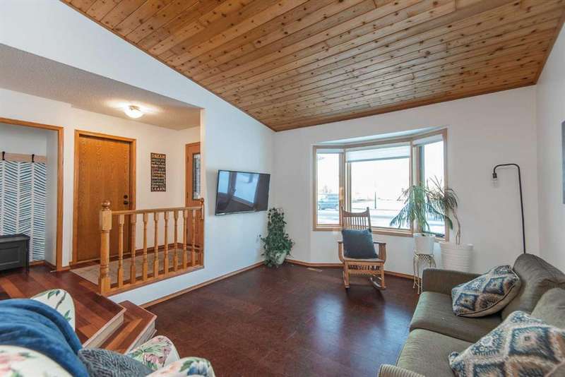 ACROSS FROM THE PARK! If you’ve been searching for a mature, quiet location on a large private lot, this is the one you’ve been waiting for! Ideally situated across from an expansive park, community hall, playground, ball diamond, and outdoor gym, this home offers both convenience and tranquility. With over 1,570 sq ft on the main level and an inviting, functional floor plan, it’s perfectly suited for entertaining and meeting all your family’s needs. Enjoy cozy evenings in the sunken family room, highlighted by a beautiful bay window, rich Brazilian hardwood flooring, and a warm cedar sloped ceiling that adds character and charm. The kitchen features updated appliances and convenient outdoor access, while the formal great room just off the kitchen boasts a gas fireplace and garden doors leading to the large private vinyl deck. An ideal space for relaxing or hosting guests. The main floor includes three generous bedrooms and two bathrooms, including a primary suite complete with a walk-in closet, ensuite, and private access to the back deck. The partially developed basement adds even more potential, featuring a modern 3-piece bathroom with a tiled shower, fourth bedroom, and additional space ready for future development. Notable upgrades include composite decking, all main floor Pella windows and doors, including the garage window, and shingles installed in 2015. The garage overhead door has been replaced from the original, and the basement offers Durabuilt vinyl windows along with a renovated rec room and bathroom completed in 2010. Additional improvements include a 2018 hot water tank, an upgraded furnace, and updated electrical wiring and panel. This meticulously maintained home offers comfort, privacy, and an unbeatable location. An opportunity you won’t want to miss!