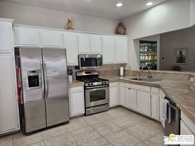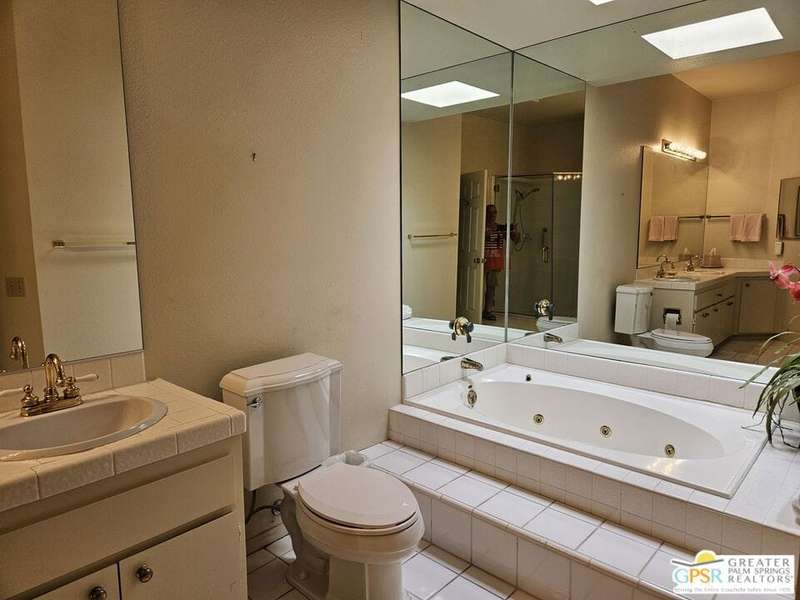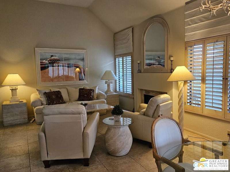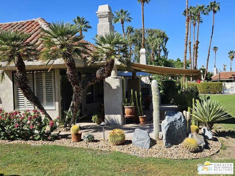 An ideal year-round home or great lock & leave as a second home. This house-like condo has high ceilings, lots of windows, greenbelt surroundings, and 2 car attached garage. New Mesquite is located adjacent to Prescott Preserve, formerly Mesquite Golf Course which is now exclusively appreciated by nature lovers and native wildlife. This particular unit has beautiful natural-finish travertine floors, large baths, and a walk-in closet in the primary bedroom. The patio of this unit may be one of the best in the entire community with desert scape borders, outdoor fireplace, and retractable awnings. New Mesquite consists of only 44 units allowing for lower density homes than in newer developments. Each structure is a duet which ensures only 1 common wall making every home an end unit. There are 2 community pools & spas, tennis & pickleball courts, and lots of open space to stretch out or share with your 4-legged family. For pet owners whose pet enjoys the outdoors, this may be their oasis in the desert.
