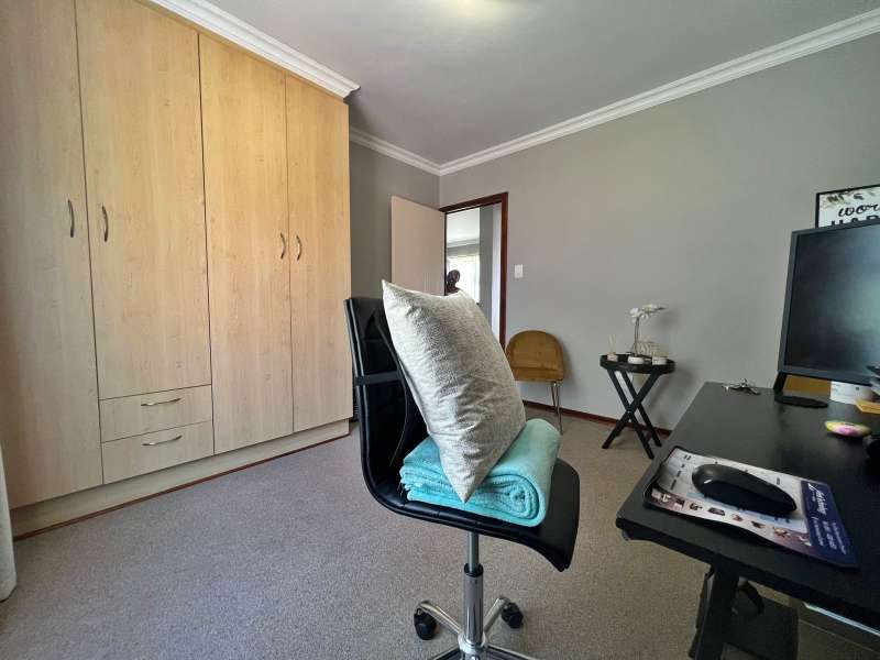 ***Exclusive Sole Mandate*** Rare Ground floor unit for sale has a large garden where your pets can play and the kids can run around. The unit is exceptionally neat and has 2 tiled bedrooms with built in cupboards. Both bedrooms are services by a full bathroom with a shower, bath, toilet and basin. The open plan kitchen and lounge is spacious and also has built in cupboards as well as space for your washing machine, dishwasher and tumble dryer. If you’re thinking of working from home, the 2nd bedroom can easily be used as an office from home as you already fiber installed. This is a great investment with an approximate rental income of R7000 per month. Levies include Water and Electricity. A Double carport will keep your vehicles safe. The complex has a communal swimming pool for your enjoyment. Don’t miss out on this fantastic opportunity! Phone Annette now to schedule your private viewing appointment.