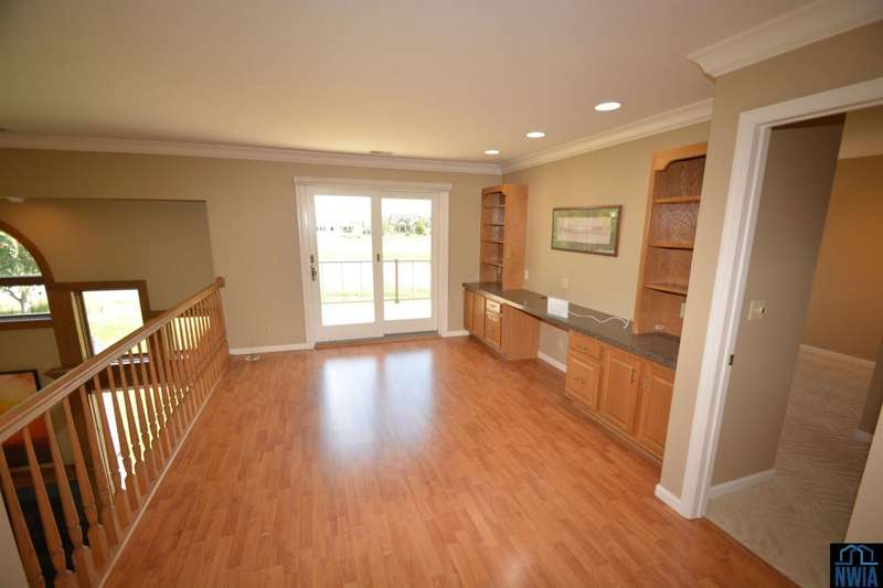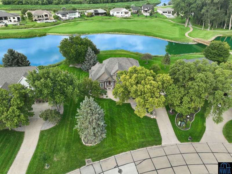 Stunning Golf Course Home with Panoramic Views. Enjoy sweeping views of the Dakota Dunes Golf Course, pond, bridge, and #5 green from this exceptional home on a private 1/3-acre lot. The 2023 updates kitchen boasts a walk-in pantry, crown molding, granite counters, tile backsplash, center island. The sunroom features lead-glass accents, filling the space with character and natural light with patio door to the deck. Upstairs, two bedrooms share a Jack & Jill bath, just off the loft office with access to a sundeck overlooking the course and pond. The spacious basement family room offers a wet bar, crown molding, built-in entertainment center and rope lighting in the tray ceiling. Recent upgrades include concrete decks (2015), siding (2016), 50 yr roof (2018), master bath (2021), and kitchen updates (2023). Storage is abundant with a full lower-level storage area plus a bonus storage room above the garage.