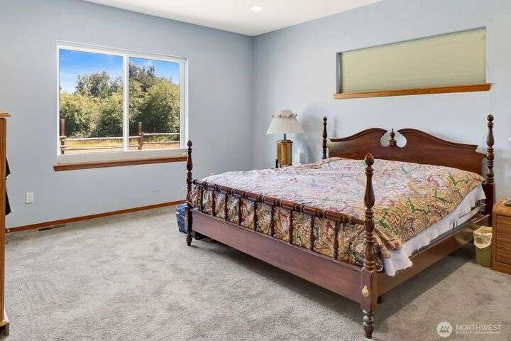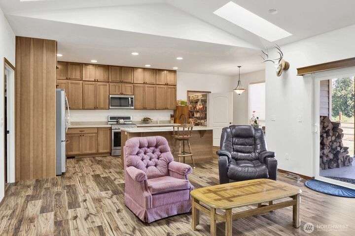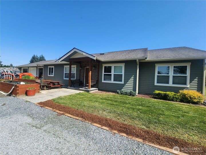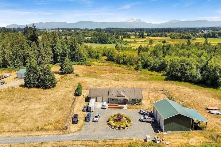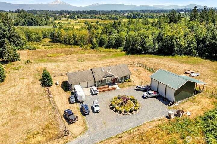 2015 1 level home with huge Shop on 3 acres with 4 bedrooms huge beautiful kitchen with wood cabinets to the ceiling, Corian counter tops, a large breakfast bar, Huge walk in pantry, stainless steel kitchen appliances, covered back Patio, Large Laundry room. Large living room with vaulted ceiling, skylights, wood stove. Primary bedroom with walk in closet & bathroom with room to add a tub. 1184 sqft 3 car Garage with storage. Heated shop, with 200 Amp service But Wired for 220 Amp, 3 bays at 14 feet height, with loft. Fenced in 3 acres, garden space & raised beds, great Mt view. Private setting with gated entry, well maintained home with only 1 owner. Extra wide hallways.