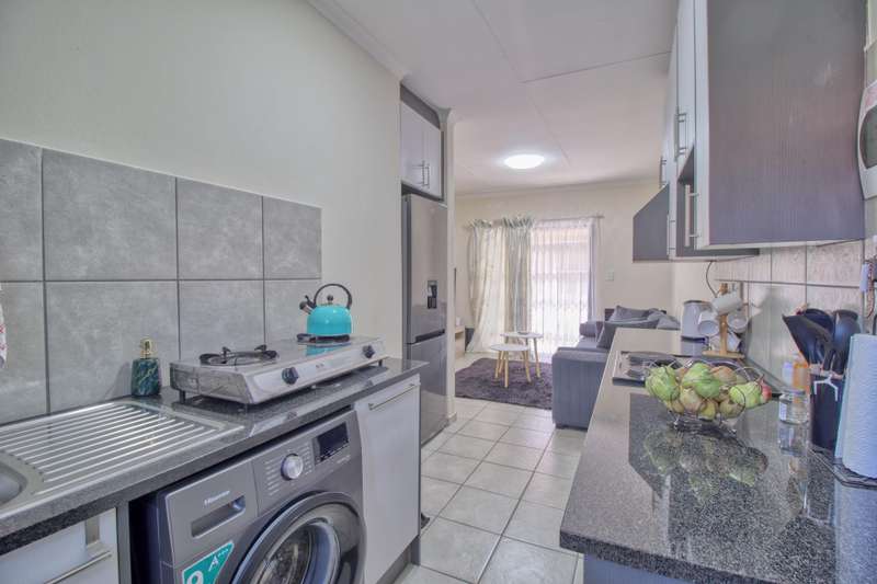 Welcome to this modern and stylish apartment, located in the highly desirable Rynfield AH area of Benoni. Featuring a contemporary design, this property boasts two spacious bedrooms and a well-appointed bathroom. The open-plan living area and kitchen offer a comfortable and inviting atmosphere, ideal for entertaining guests or relaxing with family. The highlight of this apartment is the beautiful patio, providing a perfect outdoor space to unwind and enjoy the fresh air. With a covered carport and additional open parking, parking will never be a problem for you. Equipped with modern conveniences such as fiber connectivity, prepaid electricity, and a separate water meter, this apartment offers a hassle-free lifestyle. The complex is secured with 24-hour security and electrified fencing, ensuring your safety and peace of mind at all times. With monthly levies of only R1270 and rates of R470 per month, this apartment is an excellent value for your money. Whether you're a first-time home buyer or an experienced investor, this is the perfect opportunity to own your dream home. Don't let it slip away - contact us today to schedule a viewing and start living your dream life in Rynfield AH.