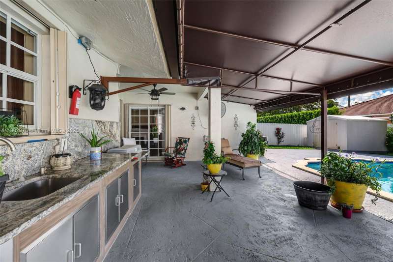 Meticulously maintained single family pool home featuring a spacious covered terrace perfect for entertaining & outdoor cooking. Includes private in-law quarters with full bath & separate entrance. Enjoy peace of mind with 2023 installed roof, 1 year old A/C units, plus accordion shutters for hurricane protection. This home has been lovingly cared for, and is move-in ready!