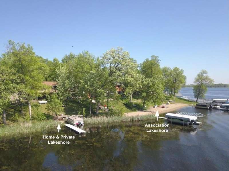 Seasonal or year round living, your choice, on East Lake- part of the 2,849-acre Horseshoe Chain of Lakes! Walkout rambler with 77' of private lakeshore ALONG with the large sandy association beach. 4 beds/2 baths all on the main level. Ready for your finishing touches, the lower level has serene views of the lake through the large sliding doors. Part of the Cedar Sunrise Estates Association where dock removal/install, septic/well, garbage, plowing, large sandy beach, dock with bench, fish cleaning house and tool shed are all included. Close proximity to entertainment, shops and restaurants. Dock and many furnishings included- please reference personal property list. Start making lake memories today!