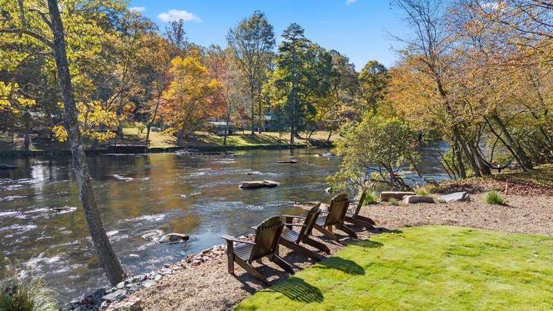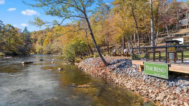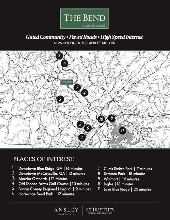 Custom built modern style home on a premier 2.30-acre riverfront lot with views from the back deck that you must see to appreciate! With 4 bedrooms, 4.5 bathrooms, and a bunk room, this 3,651 sqft (+/-) home was meticulously designed for entertainment. Expected completion date: December 2025. Located in The Bend, a refined gated community on the Toccoa River, where short-term rentals are allowed. There are 13 estate size lots, ranging in size from 1.3 to 2.4 acres with amazing river and mountain views, and not in the flood zone. This area of the river is referred to as the "rock garden" by locals and fishing guides, as large boulders protrude up out of the water and the peaceful sound of the river can be heard and a fresh smell of minerals in the air. The Bend has high-speed internet, paved roads, buried utilities, and 750' deeded river access with a common area on the river with parking, firepit, deck, kayak launch, and premium fly fishing. This house features a wall of windows at the back to enjoy unobstructed views of the river. There are three fireplaces, two inside (gas and modern 60" electric) and one outside (wood burning) on the upper deck. This home is located on the Toccoa River close to Blue Ridge, McCaysville, and Old Toccoa Farms Golf Course. Built by a lifelong Fannin County resident, Andrew Moreland. Architecture and interior design by Studio Trimble. This is a must-see to truly appreciate, house, location, and community.