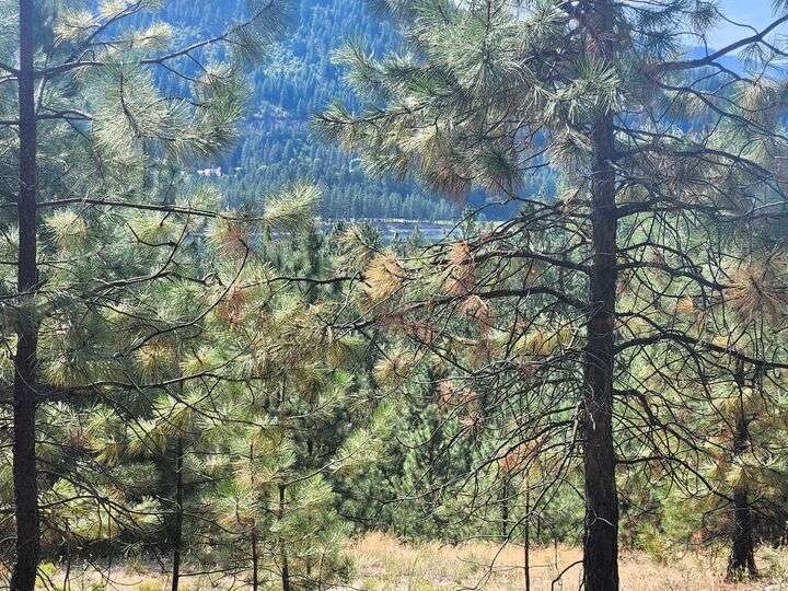 Timbered acreage with government line frontage on Lake Roosevelt. The peek-a-boo lake view could be opened up for a full panoramic view. Shared, drilled well and power nearby. Private, peaceful and ready for your dream build.