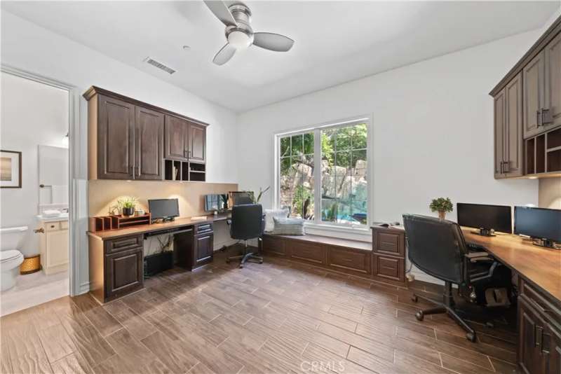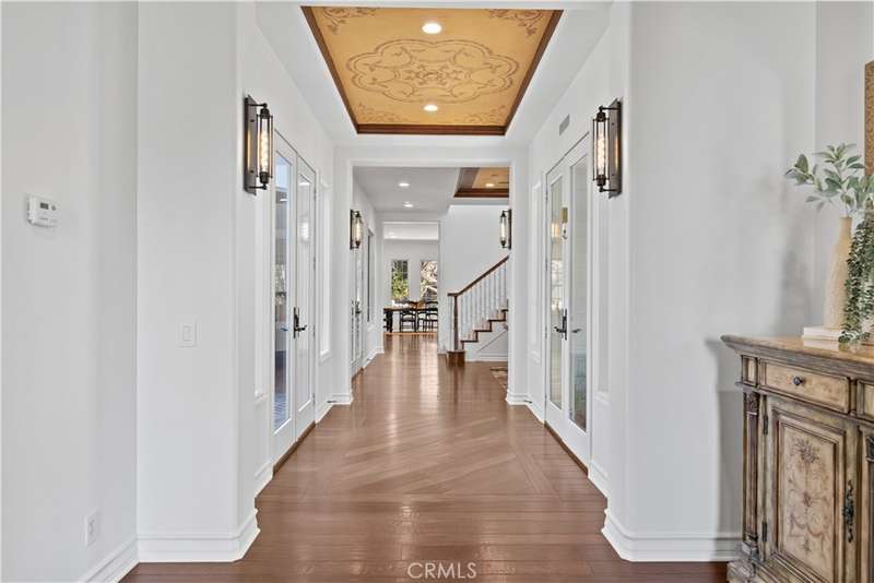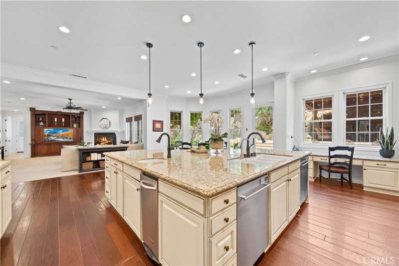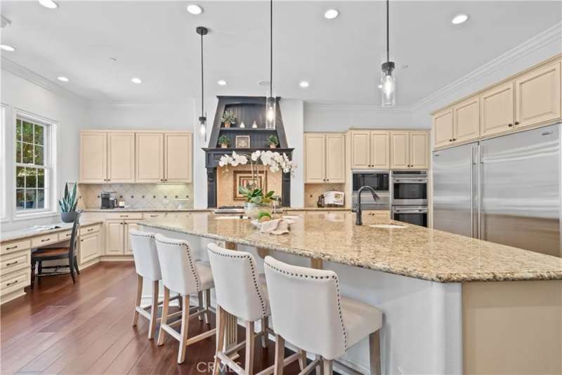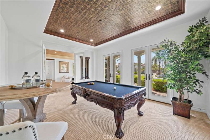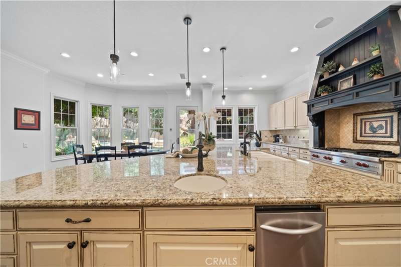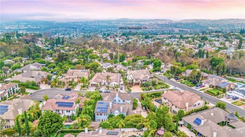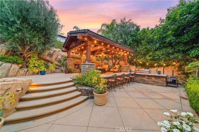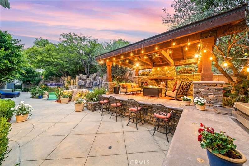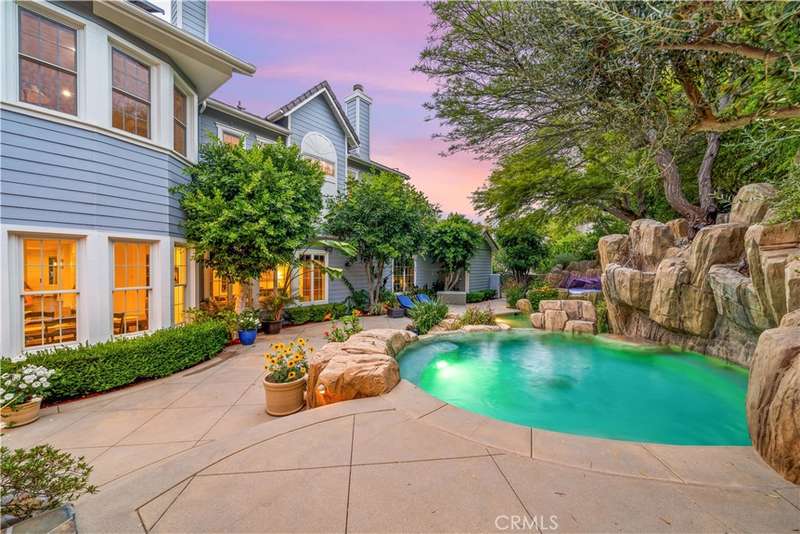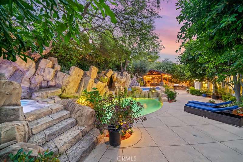 Nestled within the prestigious equestrian community of Nellie Gail Ranch, this meticulously upgraded residence is situated at the heart of a quiet, tranquil, pride of ownership interior cul-de-sac. Spanning nearly 6,000 square feet, this luxury estate offers five bedrooms, five & one-half baths, a dedicated bonus room, billiard parlor, an office with a built-in Murphy bed for guests, & an upper library, providing an exceptional breadth of living spaces for distinguished residents & their guests. The already expansive interior is complemented by a magnificent exterior designed for opulent entertaining & recreation which includes over $15,000 of specimen orange, lemon, lime, avocado, fig, apple trees & grape vines. A private lanai, adorned with sophisticated stone accents & a charming fireplace, sets the stage for al fresco dining & relaxed evenings. Beyond the lanai, a resort-style rock pool captivates with cascading waterfalls, a thrilling 35-foot slide, & a walk-in kiddie pool, ensuring endless hours of enjoyment. French doors invite a seamless transition to private interior courtyards with a koi pond creating an elegant flow ideal for both intimate gatherings & grand celebrations. Have an intimate dinner in the outdoor covered atrium in front of a cozy fireplace, the billiard parlor provides a setting for engaging games, while the upper bonus room offers a secluded space for cinematic indulgence. Culinary artistry flourishes in the gourmet kitchen, equipped with a custom mastery stove hood, a spacious seating island, Sub-Zero refrigerator & freezer, Wolf appliances, 2 dishwashers, abundant granite countertops, a convenient butler's pantry, & an integrated desk. The primary suite serves as a serene retreat, featuring a romantic fireplace & a spa-inspired primary ensuite with its own private deck, perfect for peaceful morning escapes. With a state-of-the-art entire home entertainment system, that can be accessed & enjoyed from every room of the house including the atrium & the backyard, solar panels, Tesla battery bank & gripping surround sound systems in both the family & master bedrooms. The community boasts access to 25 miles of equestrian trails, community clubhouse, tennis center with 12 championship courts, a swimming pool, numerous parks & green spaces perfect for picnics & relaxation. Nellie Gail Ranch's location provides the easy access to the various vibrant attractions beloved by Orange County residents. Welcome Home!