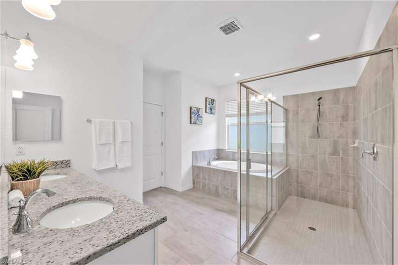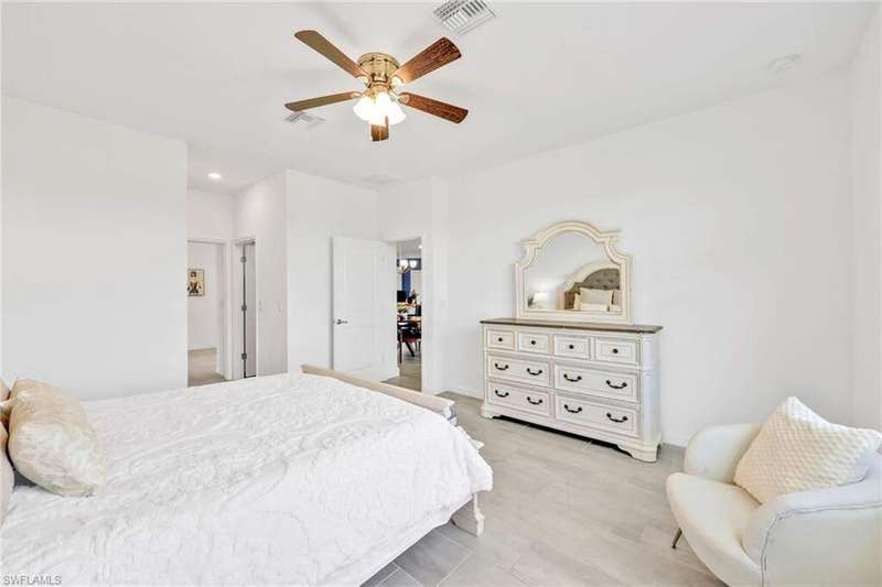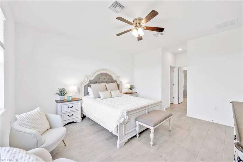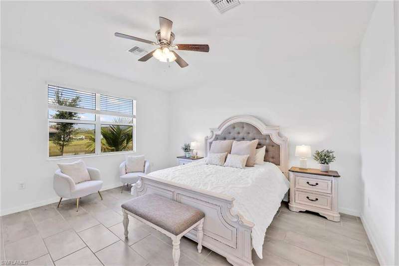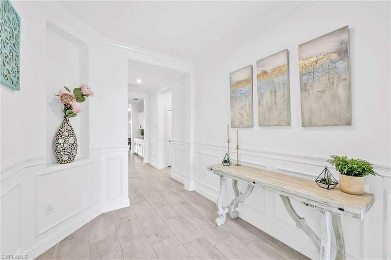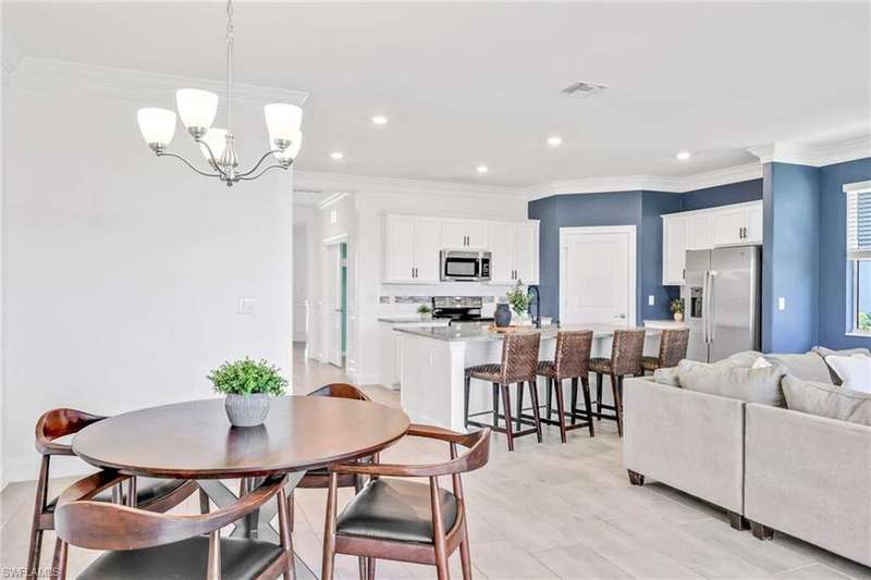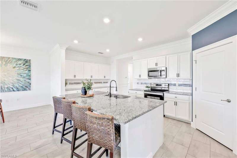 UPGRADES GALORE with this highly sought-after Marsala floor plan features 4 spacious bedrooms, 3 full bathrooms, and was built just 2 years ago. Enjoy the elegance of tile flooring, quartz countertops, and crown molding in every room for a seamless, elevated finish. The versatile 4th bedroom includes a custom Murphy bed-ideal for transforming the space into a home office or den when guests aren't visiting. The open-concept kitchen and living area flow beautifully into the backyard, where there's plenty of room to add a pool. With its west-facing exposure, you'll catch every picture-perfect Naples sunset right from your lanai. Located in one of the most desirable, family-friendly, PET FRIENDLY, gated communities in Naples, Orange Blossom Ranch offers resort-style amenities, top-rated schools, and a true sense of community. This home has it all-schedule your private showing today!