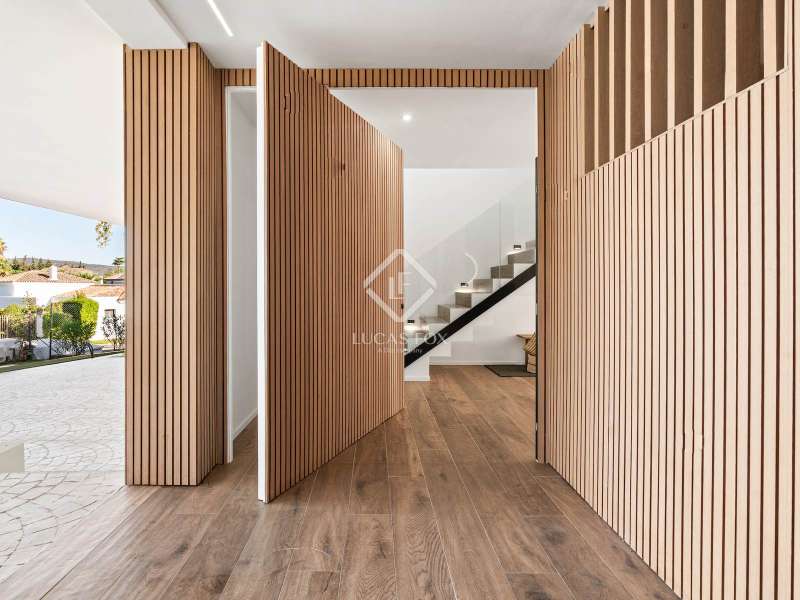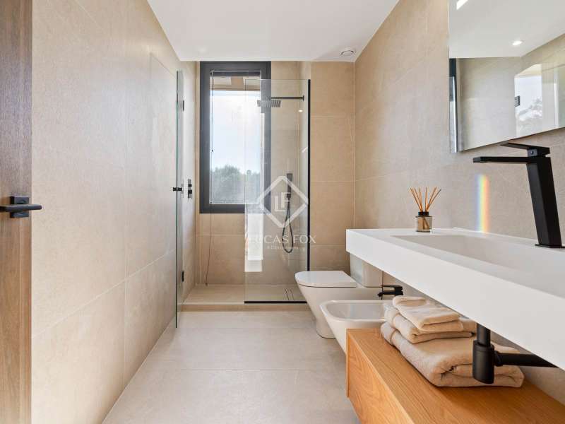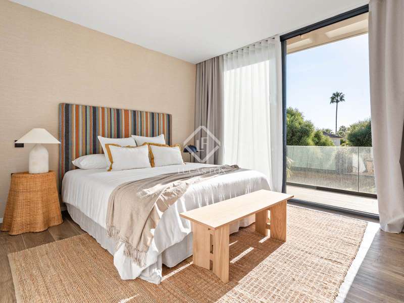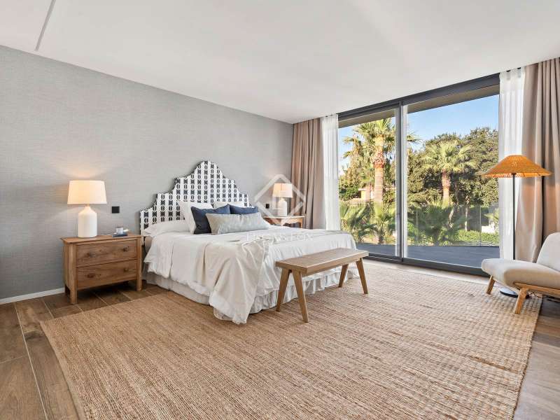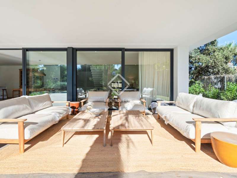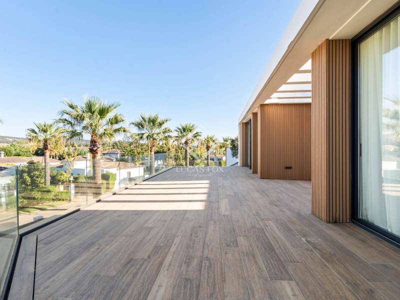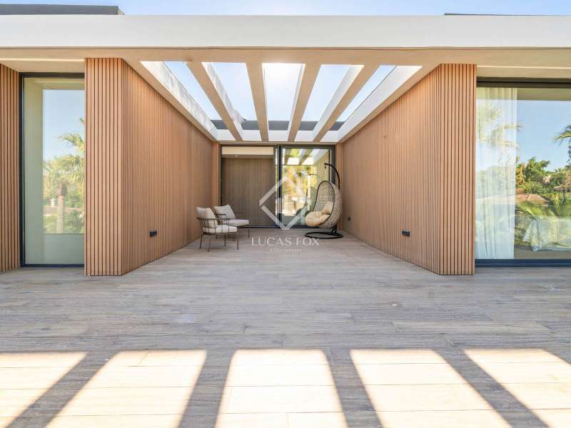 Combining elegance, comfort and cutting-edge architectural design, the villa stands on a generous 1,250 m² plot and offers a built area of 759 m², spread over two floors that maximise natural light and comfort. Ground floor Upon entering the property, an imposing gate opens onto the elegant entrance hall. From here we find a uniquely designed guest toilet, followed by the central area of the house: a spacious and bright living area divided into three rooms. A cosy sofa area, perfect for relaxing or entertaining guests. A main dining room with space for large gatherings. A modern American-style kitchen, equipped with high-end appliances and impeccable finishes. This floor also houses the service room with en-suite bathroom and the laundry area with independent outside access, designed for greater functionality. Before going up to the first floor, we discover a secret door that leads to the private cinema room, an exclusive space for enjoying entertainment at home. Upper floor An elegant hallway connects the four main bedrooms, all with en-suite bathrooms and access to private terraces. Each bedroom offers spaciousness, natural light and open views. Three of the bedrooms have separate dressing rooms in addition to beautifully designed en-suite bathrooms. The master suite stands out for its extraordinarily large dressing room and a bathroom equipped with every amenity. The terraces are one of the great attractions: more than 70 m² to enjoy the afternoon sun and another shared terrace facing the pool, perfect for catching the morning sun. Exterior The villa displays its charm on the outside with different areas designed for relaxation and entertainment. On the plot we find: A chill-out area, divided into a dining area and a relaxation area. A spectacular private swimming pool, surrounded by gardens and vegetation.