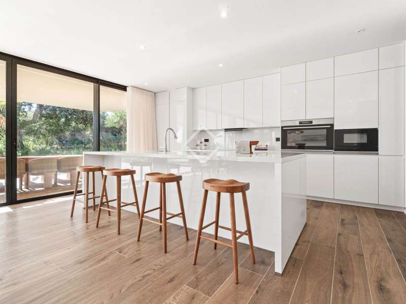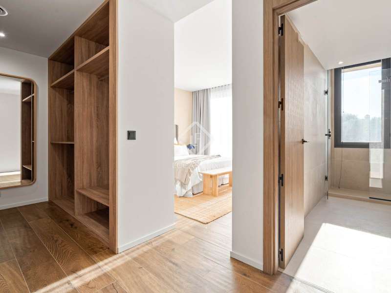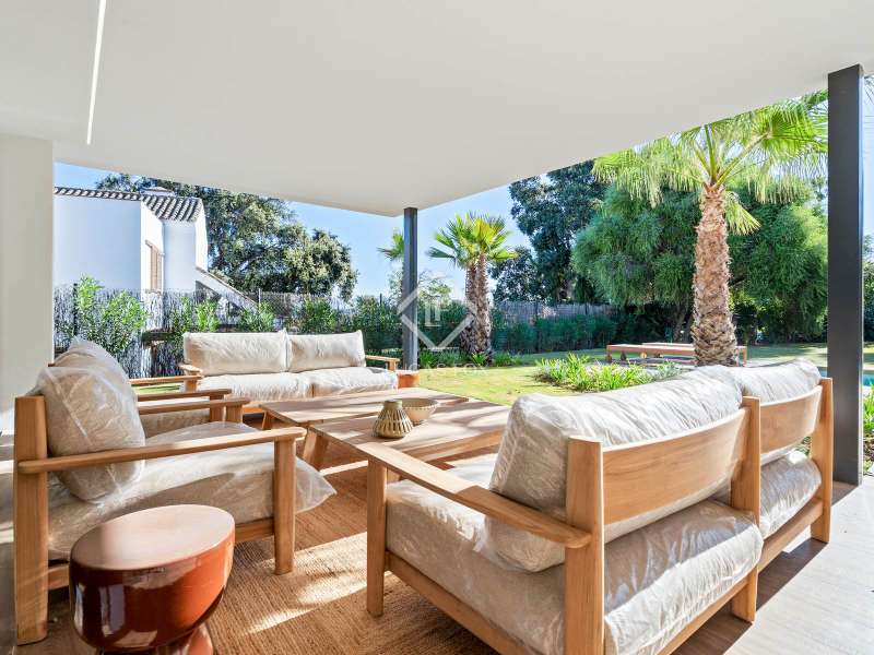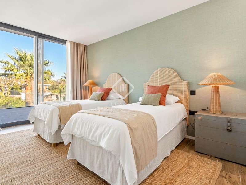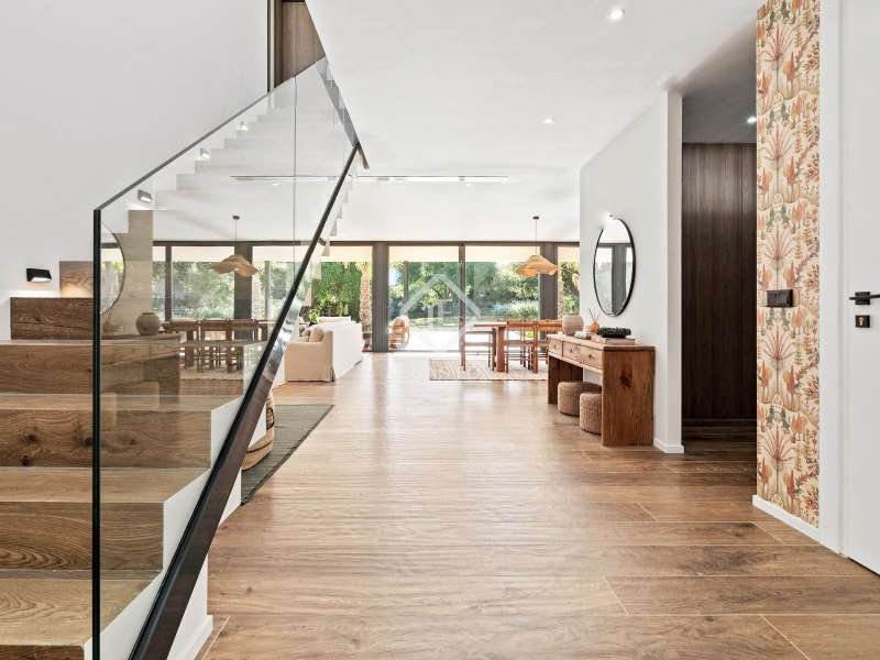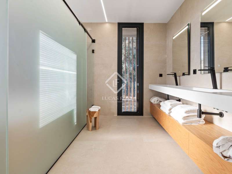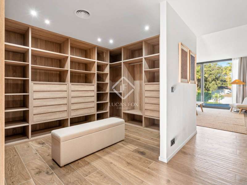 Combining elegance, comfort and cutting-edge architectural design, the villa stands on a generous 1,250 m² plot and offers a built area of 759 m², spread over two floors that maximise natural light and comfort. Ground floor Upon entering the property, an imposing gate opens onto the elegant entrance hall. From here we find a uniquely designed guest toilet, followed by the central area of the house: a spacious and bright living area divided into three rooms. A cosy sofa area, perfect for relaxing or entertaining guests. A main dining room with space for large gatherings. A modern American-style kitchen, equipped with high-end appliances and impeccable finishes. This floor also houses the service room with en-suite bathroom and the laundry area with independent outside access, designed for greater functionality. Before going up to the first floor, we discover a secret door that leads to the private cinema room, an exclusive space for enjoying entertainment at home. Upper floor An elegant hallway connects the four main bedrooms, all with en-suite bathrooms and access to private terraces. Each bedroom offers spaciousness, natural light and open views. Three of the bedrooms have separate dressing rooms in addition to beautifully designed en-suite bathrooms. The master suite stands out for its extraordinarily large dressing room and a bathroom equipped with every amenity. The terraces are one of the great attractions: more than 70 m² to enjoy the afternoon sun and another shared terrace facing the pool, perfect for catching the morning sun. Exterior The villa displays its charm on the outside with different areas designed for relaxation and entertainment. On the plot we find: A chill-out area, divided into a dining area and a relaxation area. A spectacular private swimming pool, surrounded by gardens and vegetation.