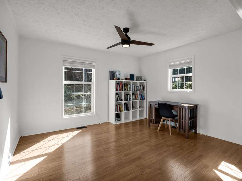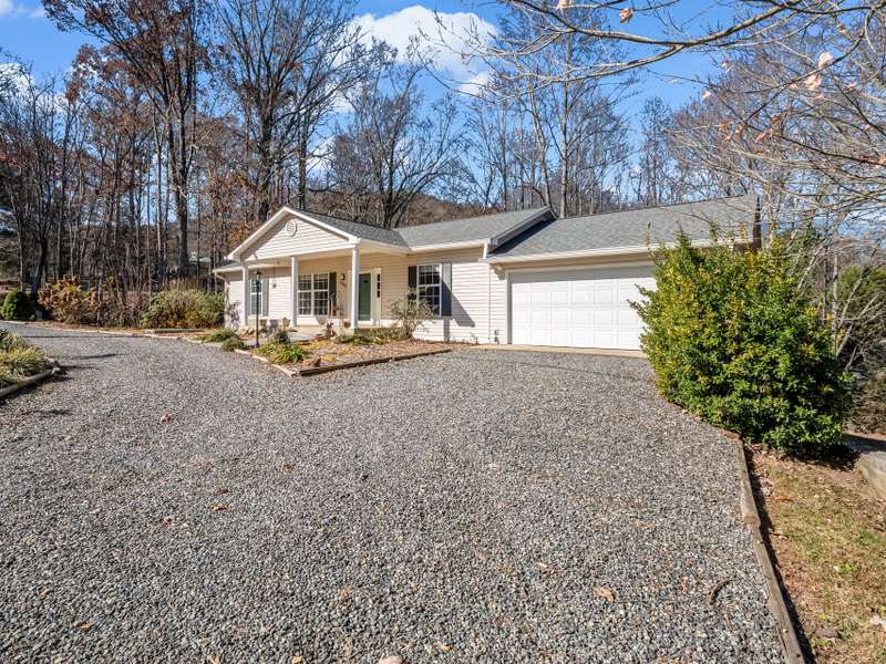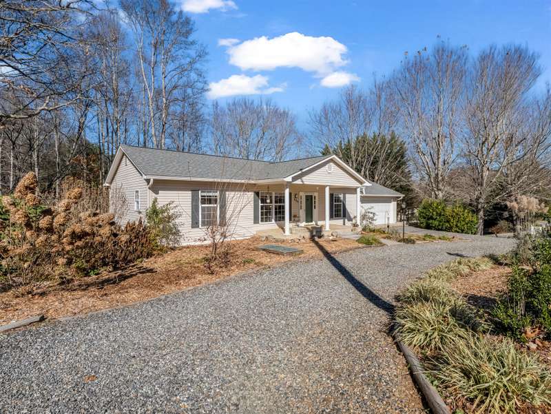 Discover this bright, move-in ready home just minutes from West Asheville - with no city taxes and nestled in a peaceful, wooded setting. Enjoy a highly functional single-level layout plus a full daylight basement that offers exceptional storage, workshop space, and future expansion possibilities.Inside, an open floor plan connects a spacious living room, dining area, and a generously sized kitchen. The split-bedroom design offers privacy, with a large primary suite featuring an en-suite bath, and a second bedroom served by a full hall bath. A dedicated office with a closet provides an ideal space for remote work, study, or a nursery, and includes main-level laundry hookups. (Septic permit is for 3 bedrooms.)Relax outdoors on the large back deck overlooking the quiet yard or unwind on the covered front porch. The basement includes a second laundry area, and the attached garage is wired and ready for an EV charger. Major updates - including a new roof (2021) and new HVAC system (2024) - assure valuable peace of mind.With its quiet location, flexible layout, and minimal maintenance needs, this home is an excellent fit for anyone seeking comfort close to town with room to grow.