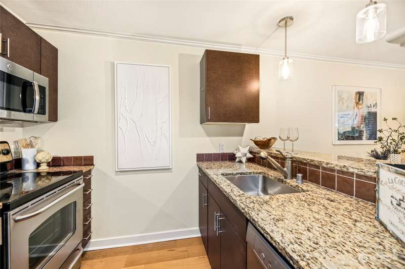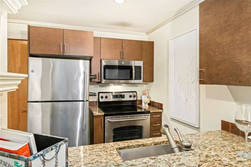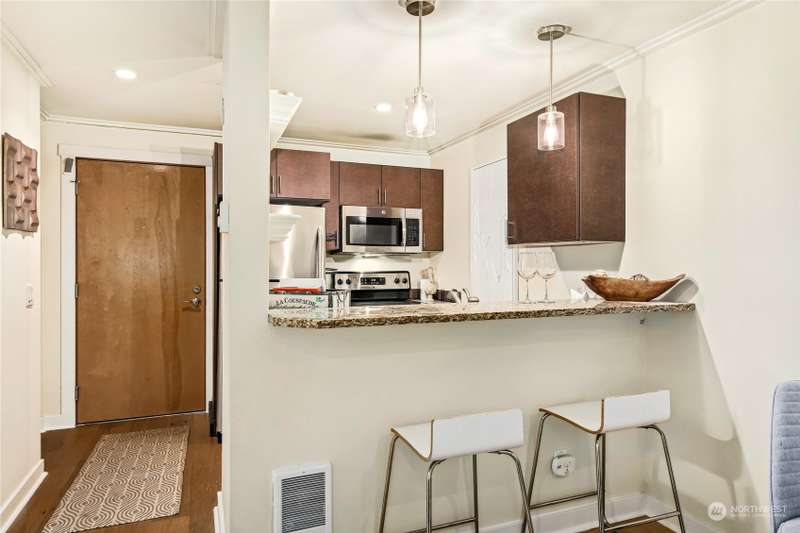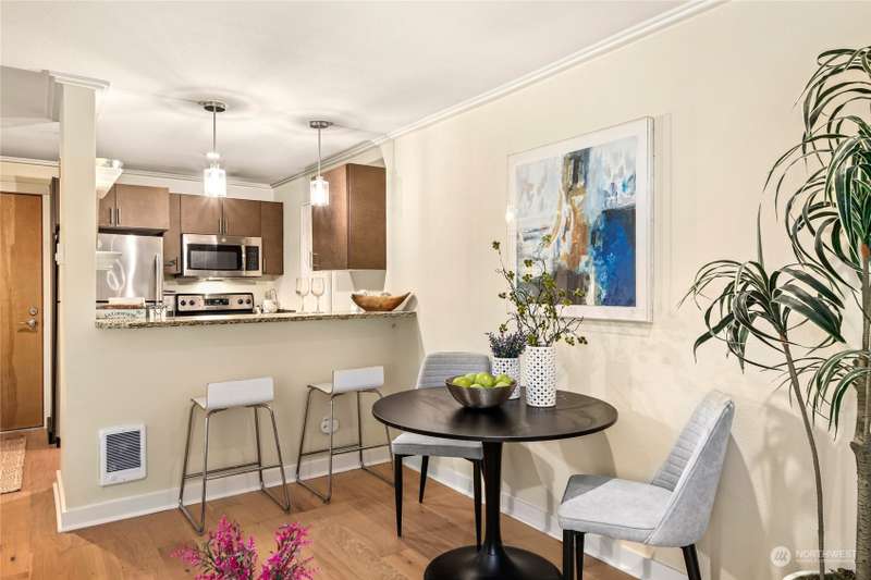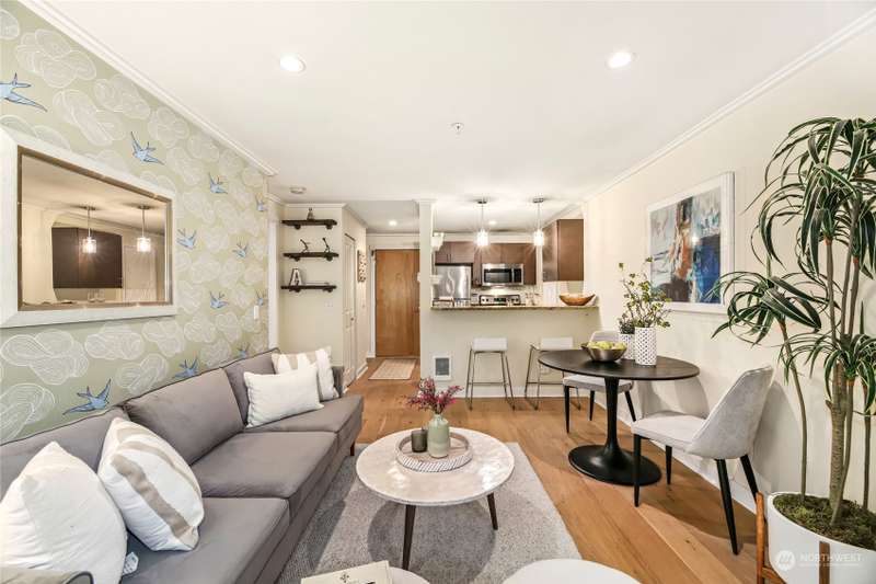 Welcome to Andiamo, an exquisite boutique community nestled mere blocks from Seattle Center in Lower Queen Anne. This elegant 1-bedroom, 1-bathroom condominium's features include: NEW wide plank wood flooring and carpet, granite countertops, an in-unit washer and dryer, and a dedicated underground parking stall. Enjoy coffee on your private deck or head up to sprawling rooftop deck offering breathtaking views of downtown Seattle and Elliott Bay. Conveniently located near Amazon, Google and Apple HQ and beloved neighborhood staples such as Metropolitan Market and Toulouse, this residence offers the perfect blend of urban convenience and residential tranquility. Additionally, no rental cap, makes this home a great investment opportunity!