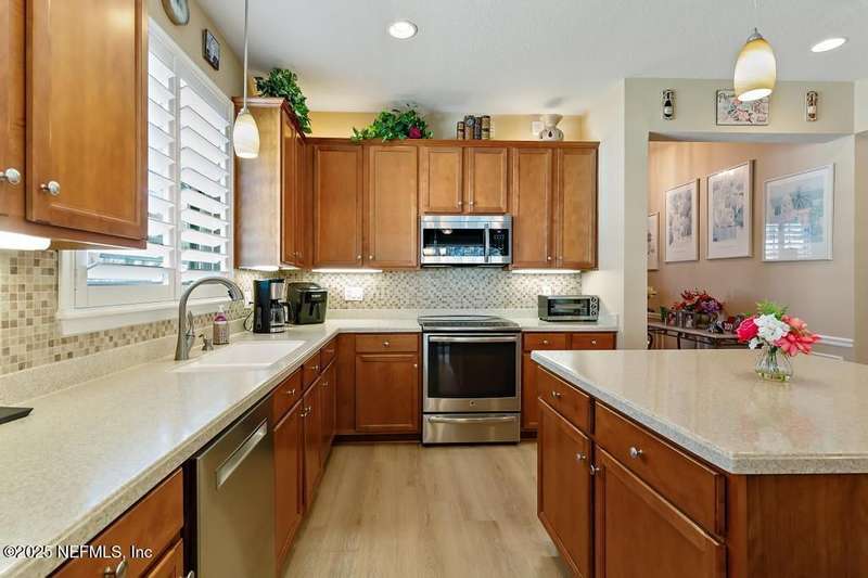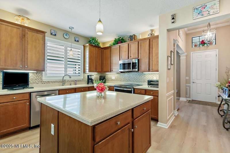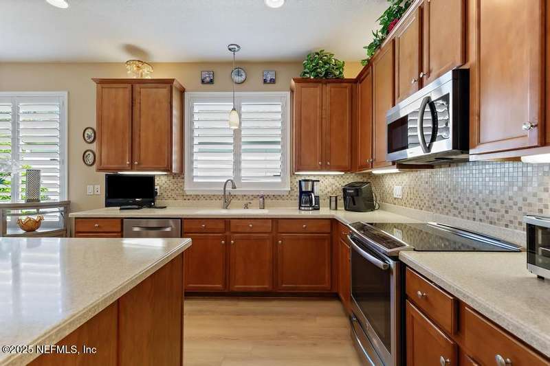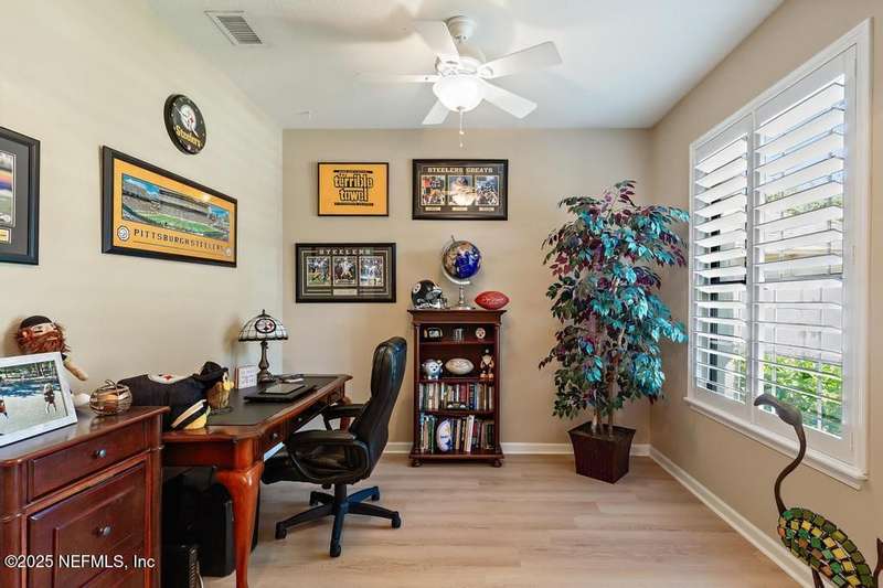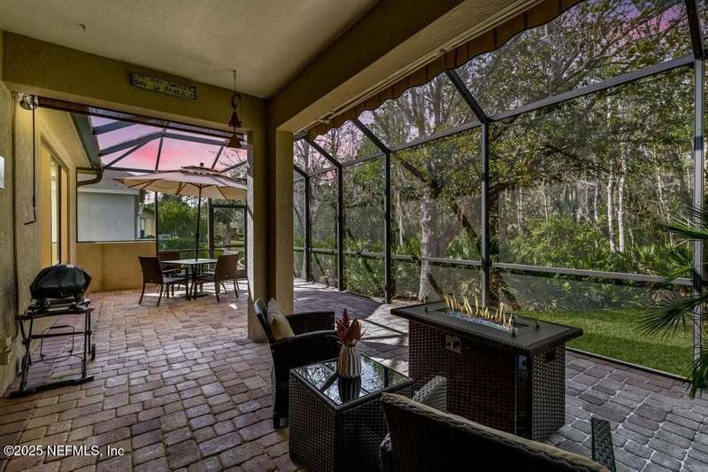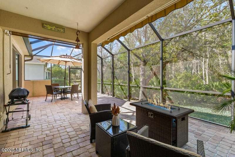 BRAND NEW ROOF (SEP 2025). Discover the Willow floorplan in the highly sought-after, gated 55+ community of Del Webb Ponte Vedra in Nocatee. Nestled on a tranquil cul-de-sac and surrounded by a serene nature preserve, this beautifully designed block construction home offers 2 bedrooms, 2 bathrooms, office/flex room, plus 16x40 sqft of screened outdoor living space on peaceful preserve lot.Step outside to the extended covered and screened lanai, where you can relax and enjoy sweeping views of the lush preserve. Inside, the open-concept kitchen features elegant 42'' cabinets with under and over-cabinet lighting, a spacious kitchen island, convenient roll-out drawers, a stylish backsplash, and updated stainless steel appliances. Recent upgrades include new Roof (2025), 6 new Anderson windows (2021), vinyl wood plank flooring (2022), updated interior paint (2023), and a newer HVAC system with a Nest thermostat (May 2022).