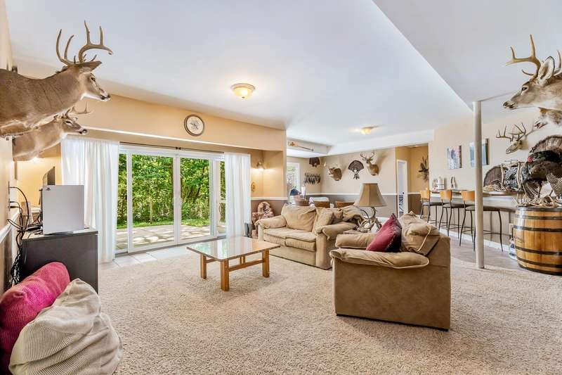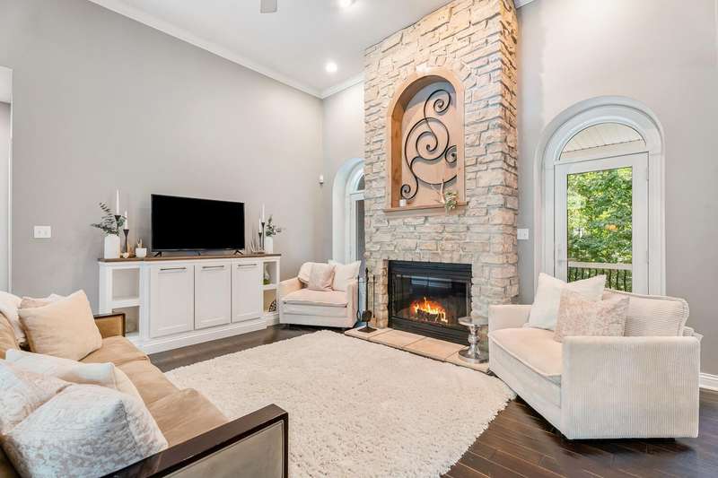 HUGE PRICE REDUCTION!! Luxury living awaits you in this custom built 1 1/2 story home with full finished walkout basement. The home is situated on 1.77 tranquil wooded acres. Enter into the grand foyer with custom ceiling tray ceilings. The great room is highlighted by a real stone fireplace (wood or gas) flanked by doors to 15' balcony overlooking woods. Custom built in TV, dining room with 14' tall custom painted tray ceiling. (Beautiful Holiday tree spot!) Hardwood floors are 5 hand scraped maple. The primary bedroom, ensuite, and walk-in closet also has an incredible large walk-in shower and whirlpool tub! Upstairs bedroom, full bathroom and bonus room great for guests. The full finished basement is complete with an office, full bathroom, an family room. Just over an hour to Chicago!! You will be amazed by the meticulous landscaped and beautifully maintained home. Schedule your showing today!!