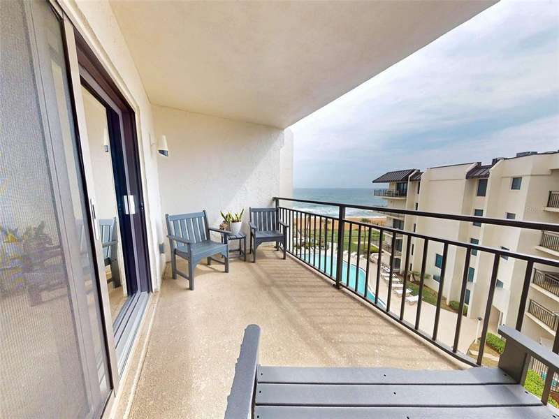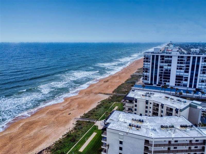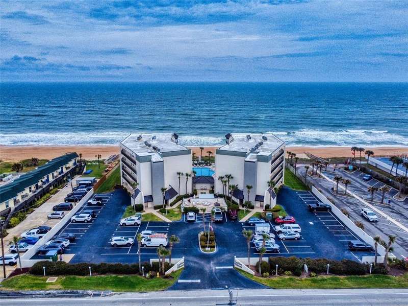 Beautiful 2 bedroom/ 2 bath PENTHOUSE condominium located beachfront in Ormond Beach! Enjoy serene ocean views and listen to the peaceful waves from your private balcony, accessible from both the spacious living room and primary bedroom. This 5th floor unit is being sold furnished and short term rentals are permitted (one week minimum). Catch breathtaking sunrises while lounging poolside or step across the conveniently located walkway to get your toes in the sand. The Indies House offers a community pool, laundry facilities, elevator, private parking and is located across the street from restaurants and shopping. HVAC new in 2021, Tankless Water Heater installed 2023, Dishwasher new in 2023 and unit was freshly painted in 2024. If you are looking for a second home to escape the chilly north, someone in search of your Florida dream home or an investor looking for income opportunities, this property is a must see!