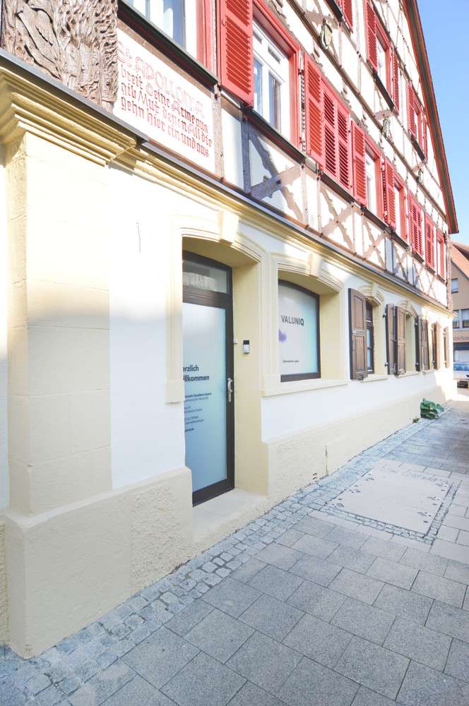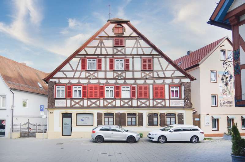 On an exclusive commission, we present a historic residential and commercial building in the heart of Schwäbisch Gmünd! This cultural monument is a decorative half-timbered house with a crippled hipped roof whose façade is decorated with reliefs depicting saints. It is a listed building according to §2 of the Monument Protection Act. This special property is divided as follows: First floor + an office unit with 3 rooms plus kitchen (approx. 83 m²), rented since 08.2022, + common entrance area with + access to a storage room, + access to the partial basement and to the + staircase with access to the residential units. Upper floor + a 3-room apartment (approx. 88 m²) on the upper floor on the left, rented since 09.2020 and + a 1.5-room apartment (approx. 32 m²) on the upper floor on the right, rented since 10.2020. Top floor + a 2.5-room apartment (approx. 58 m²) in the attic on the left, rented since 05.2022, + one room with separate kitchen and bathroom (accessible via the communal hallway) on the top floor on the right (total of approx. 44 m² of usable residential space), rented since 09.2023 and + access to the 1st and 2nd top floor with a total of around 120 m² of usable space. Top floors + Storage areas for the rented units and + access to the 2nd loft. The total rental income (basic rent) is currently EUR 23,280 p.a. (EUR 1,940 p.m.). From August 2024, the rental income will increase to EUR 26,280 p.a. (EUR 2,190 p.m.). The operating costs currently amount to around EUR 3,120 p.a. (EUR 260 p.m.). A brief overview (further information can be found under Equipment/Description): + all units are currently let, + A rent increase has already been fixed in the rental agreement for the first floor unit, + Plans for the conversion of the top floor into two separate residential units are available, + if the first floor unit previously rented as an office is to be converted into living space at a later date, separate funding opportunities can be examined here. *** We ask for your understanding that we have refrained from showing pictures of the rented interior areas in order to preserve the privacy of the current tenants. *** Please note the following information: *** We can only process your request with complete contact details (first name, last name, current address, telephone number and e-mail address)! ***