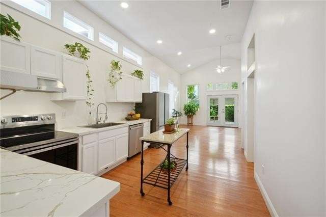 Centrally located, bright and airy, fully renovated 3 bed, 2.5 bath home with a deck and fully fenced yard. This spacious home has 12 foot ceilings, hardwood floors throughout and marble tile bathrooms. A new roof, HVAC, plumbing, and electric will diminish insurance costs drastically! The kitchen has all new, stainless appliances and effortlessly flows to the dining and lounge area with cathedral ceilings. An abundance of light shines from the back wall with large windows and double doors that open to the deck and generous yard. The primary bedroom has tons of storage with three closets and and en suite bath with a claw foot tub and double headed shower. Two more separate and roomy bedrooms share a full bath with a marble tiled floor. An affordable turnkey abode for easy upkeep! Come see!