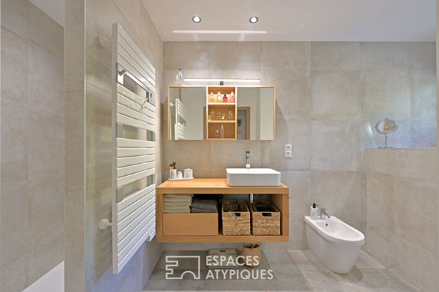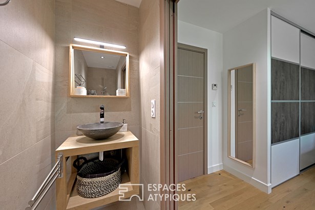 The sleeping area, like the rest of the house, exudes calm and tranquility: a master suite with dressing room and shower room opens onto the back garden, while two bedrooms with fitted wardrobes share a second, refined shower room.